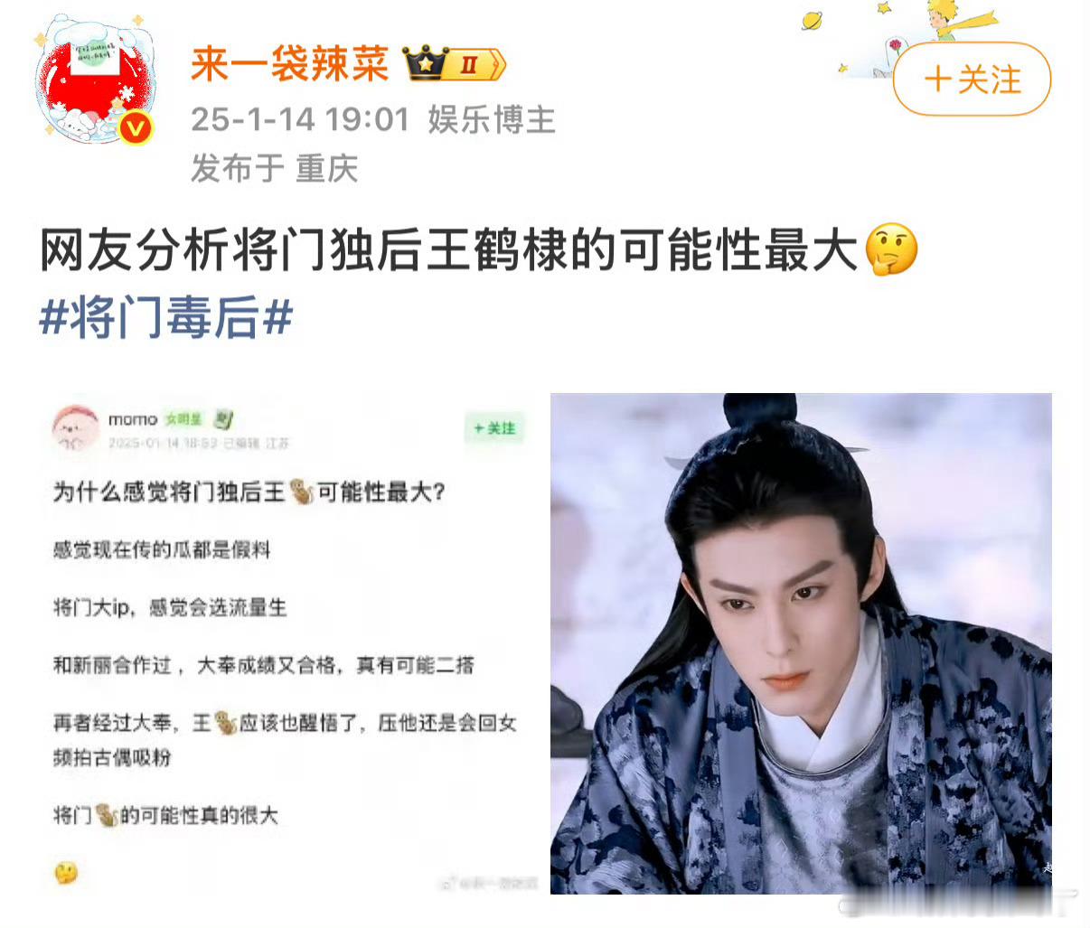 热巴拒了将门毒后,脑子没坏的都不会接将门,播出除了被嘲啥也没有,这个饼对于流量
