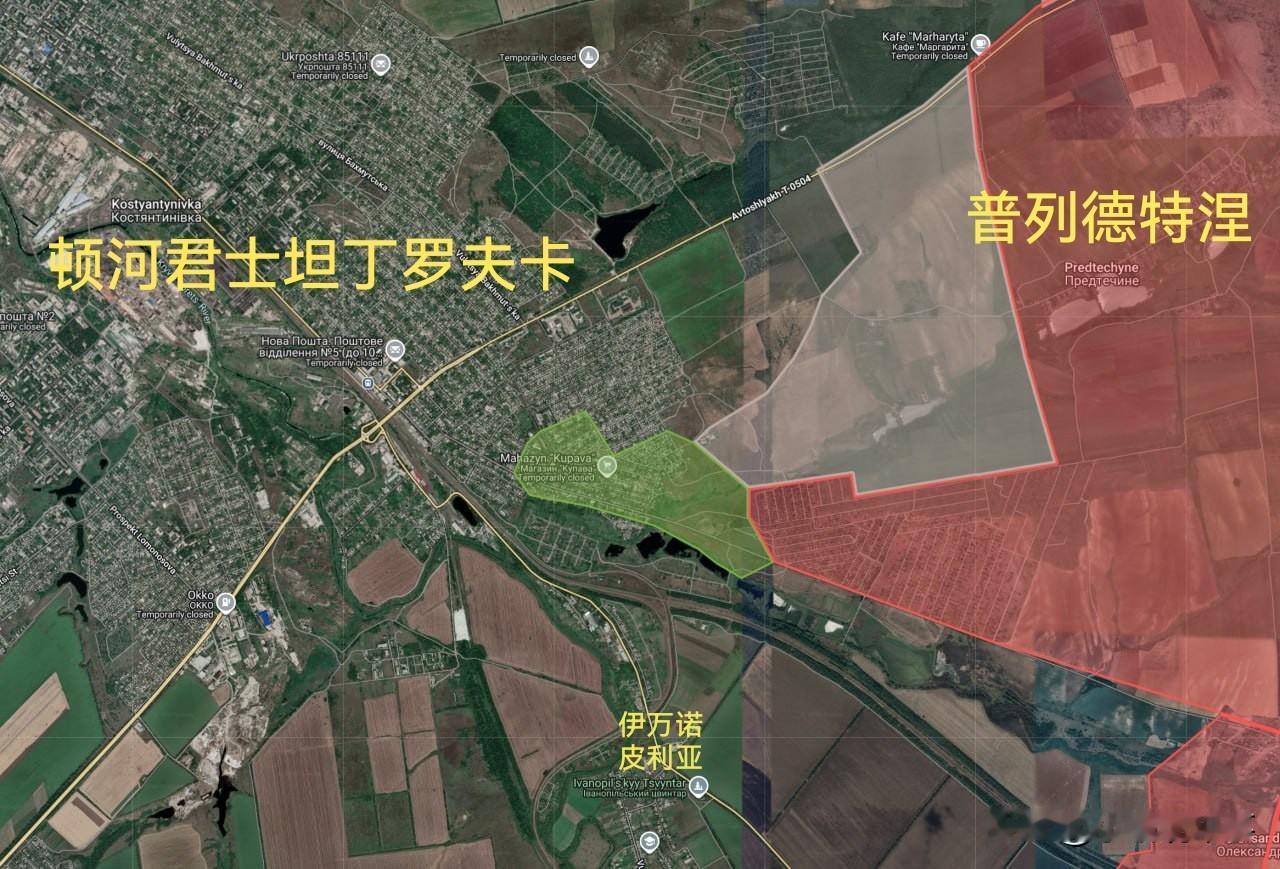 10月24日K哥更新俄乌战报: 图一:俄军已到达了红利曼市的东郊。 图二:俄军已推进至顿河君士坦丁罗夫卡市东部地区。灰色地带已添加到普列德特涅村以西地区。 图三:俄军完全占领了红军村方向的罗金西克市。 图四:俄军在红军村市北部继续推进。 图五:俄军占领了哈尔科夫州的博洛吉夫卡村,并与己方部队控制的斯特罗伊夫卡村连接起来。 俄罗斯前线战报 顿涅茨克局势 顿涅斯克战况 顿涅茨克战场 乌东前线局势