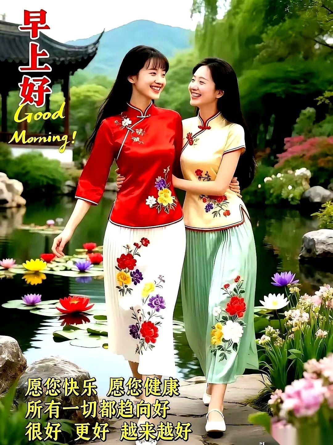 我敢说,每个人的家族群里,都供着一位“旗袍女神”。 雷打不动,每天早上七点,伴随着第一缕阳光,她就会出现。 身段妖娆,手持油纸伞或是一朵半开不开的莲花,背景永远是P得有点失真的山水瀑布。 旁边再配上几个硕大无比、闪着金光的艺术字: “晨光熹微,岁月静好,祝君安康!” 说真的,以前我觉得这玩意儿土得掉渣。 这死亡荧光配色,这十年前的影楼风,这尴尬又不失礼貌的微笑……简直是我的“电子榨菜”,每天早上非得“品尝”一遍。 但后来有一天我突然想明白了。 这哪里是一张简单的早安图啊。 这分明是我们的妈妈、阿姨们,在用她们那个年代最隆重的审美,笨拙地表达着最真挚的爱意。 她不懂什么叫高级灰,也不懂什么叫留白。 在她眼里,花就要开得最艳,字就要闪得最亮,祝福就要说得最满,这才是诚意。 她可能在几十张图里翻了半天,就为了挑一张“看上去最有福气”的发给你。 这份关心,比任何一句“在吗”都来得踏实、温暖。 所以现在,我再收到这种图,不嫌烦了。 我甚至会回一个同样“喜庆”的表情。 因为我知道,这略显“辣眼睛”的图片背后,是一个长辈在对我说: “孩子,见图如面,今天也要好好的呀。”