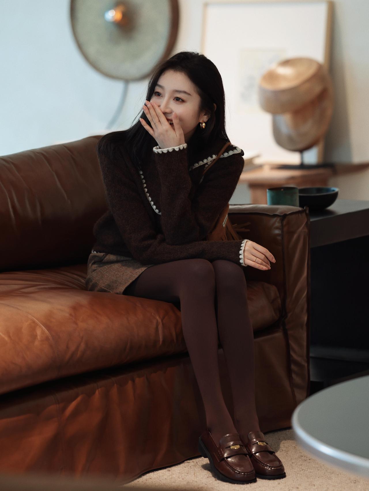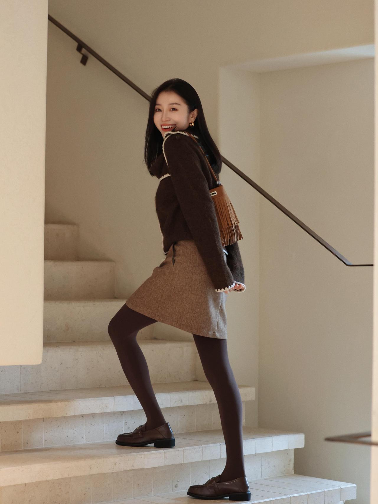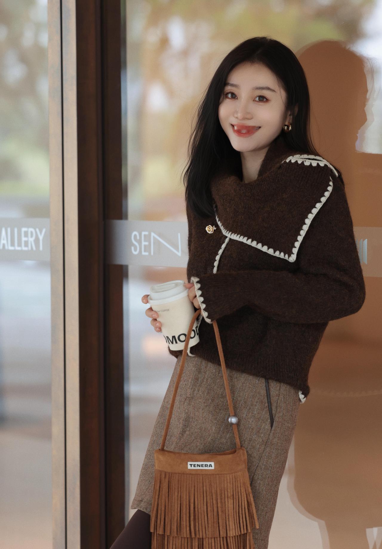 什么样的穿搭可以成为气质女神? 冬日穿搭 温暖毛衣+毛呢短裙,手捧热饮,暖心又时尚!🍂👗📸