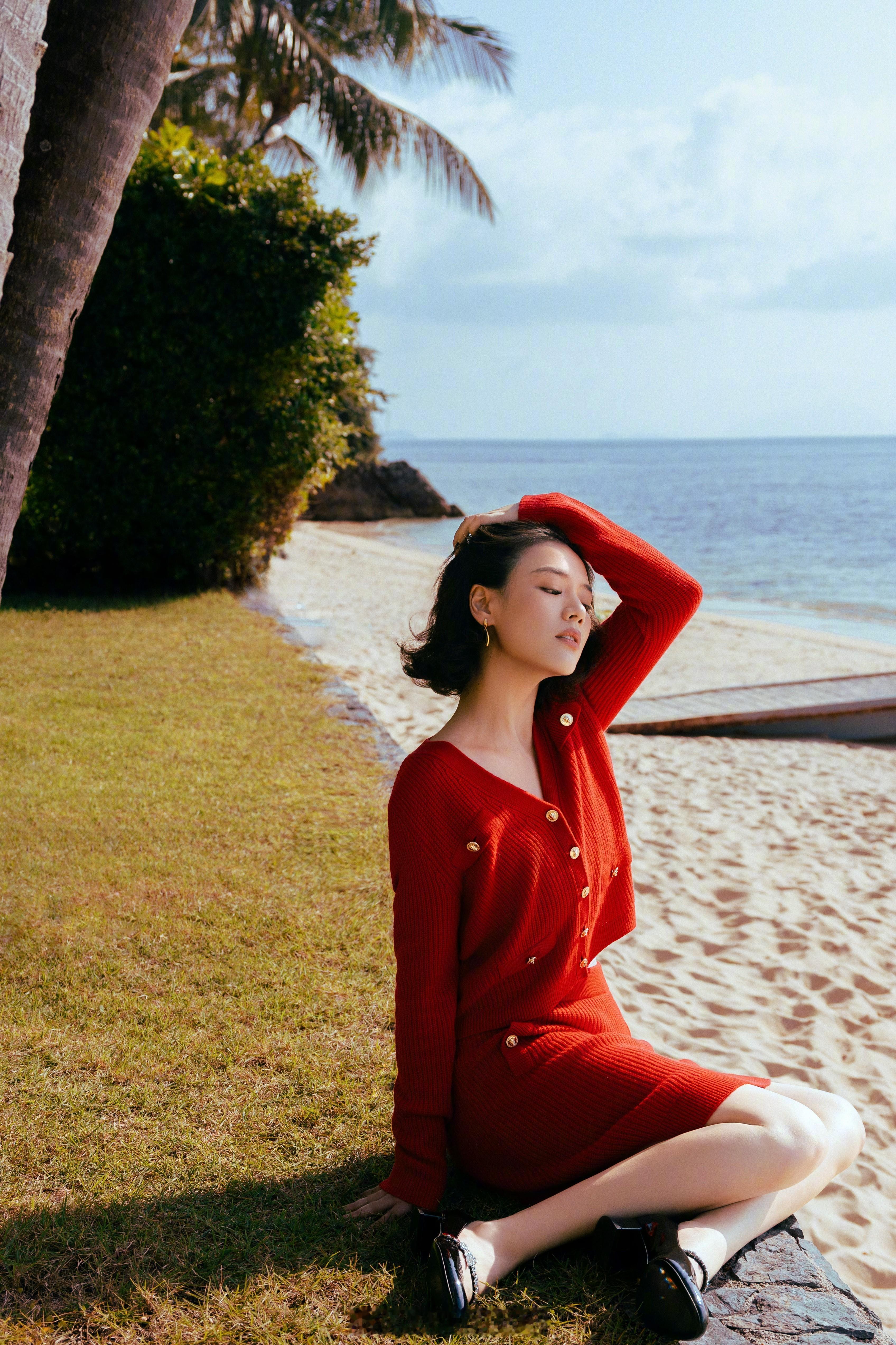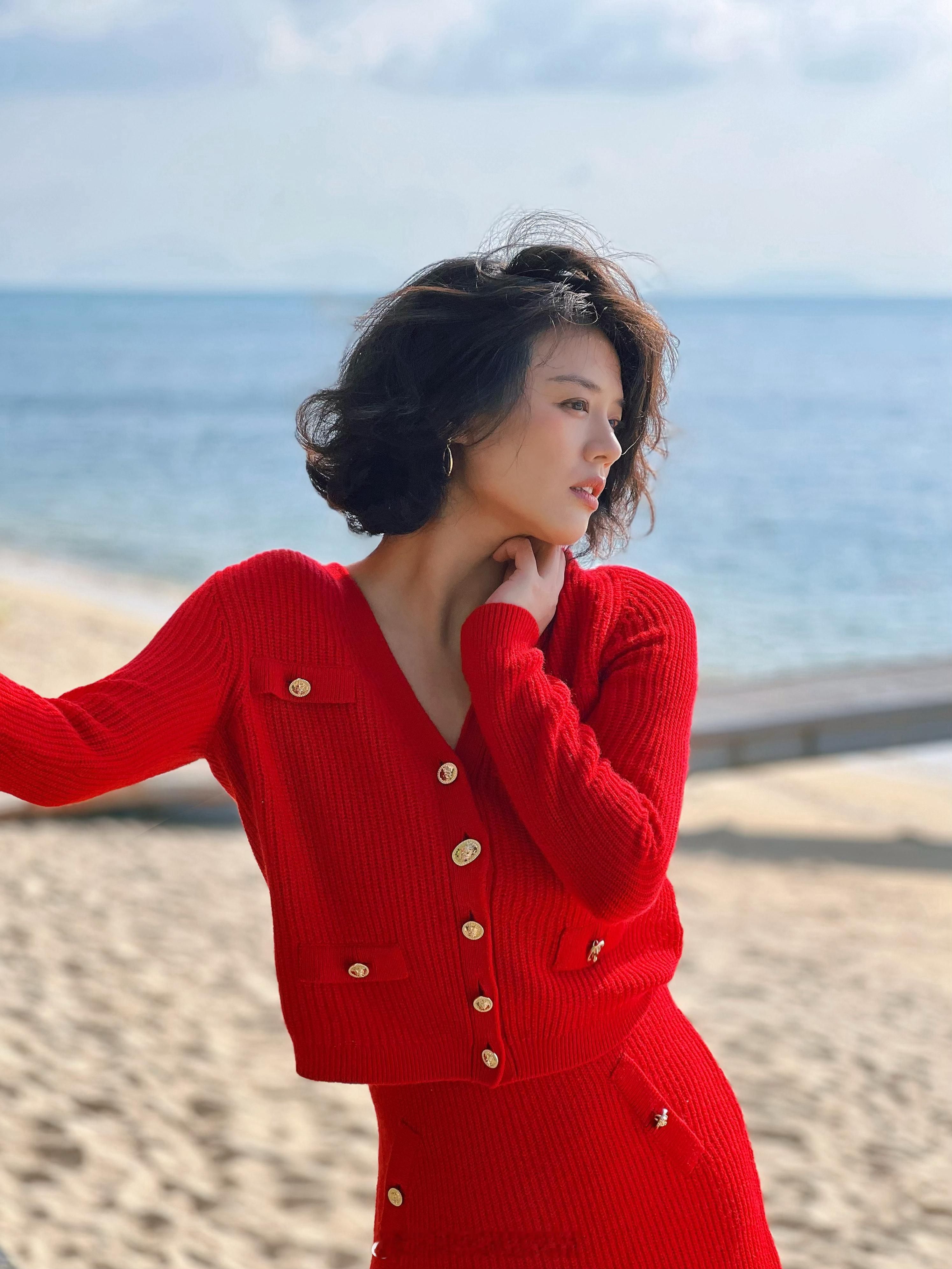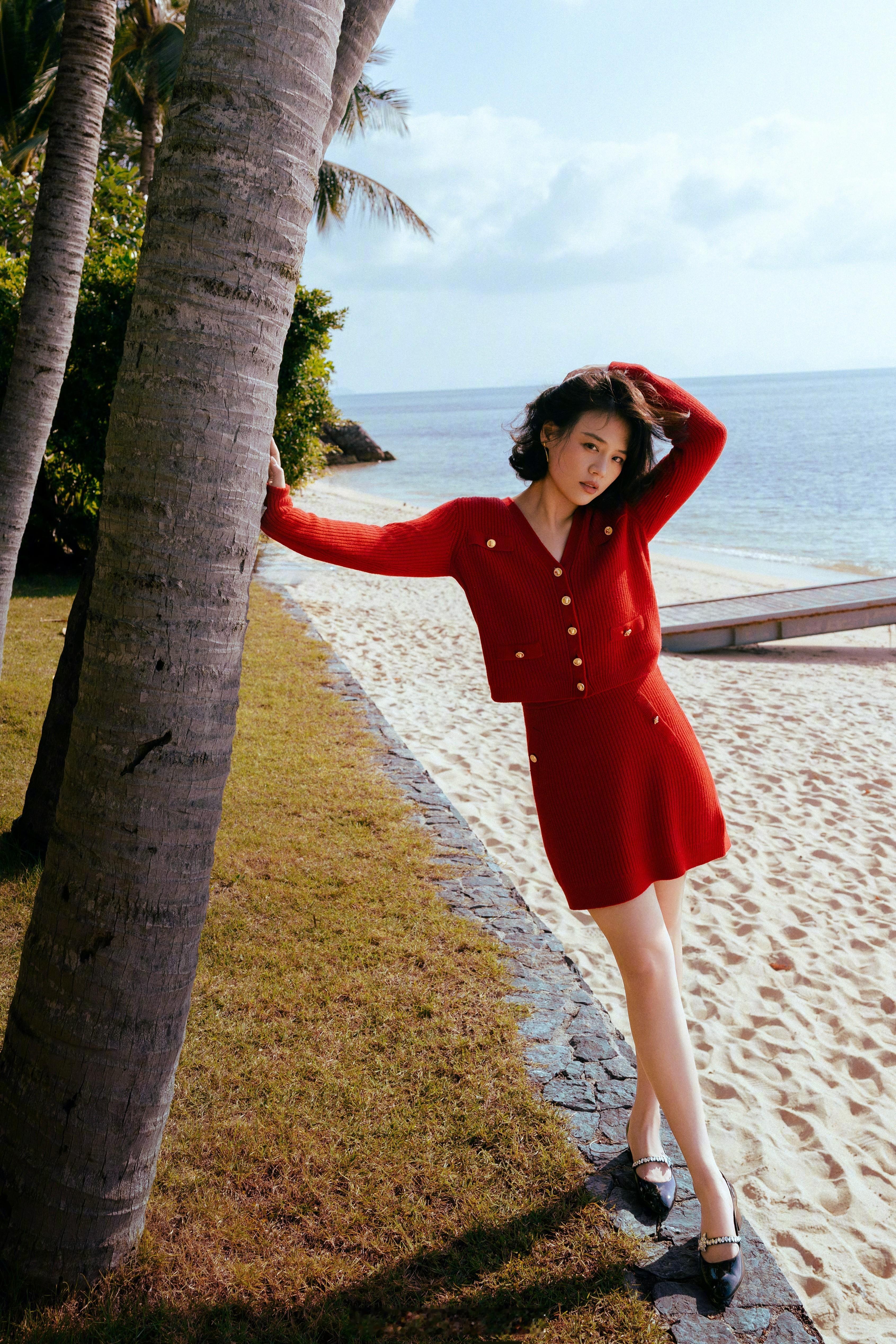 马思纯红色穿搭挺美的