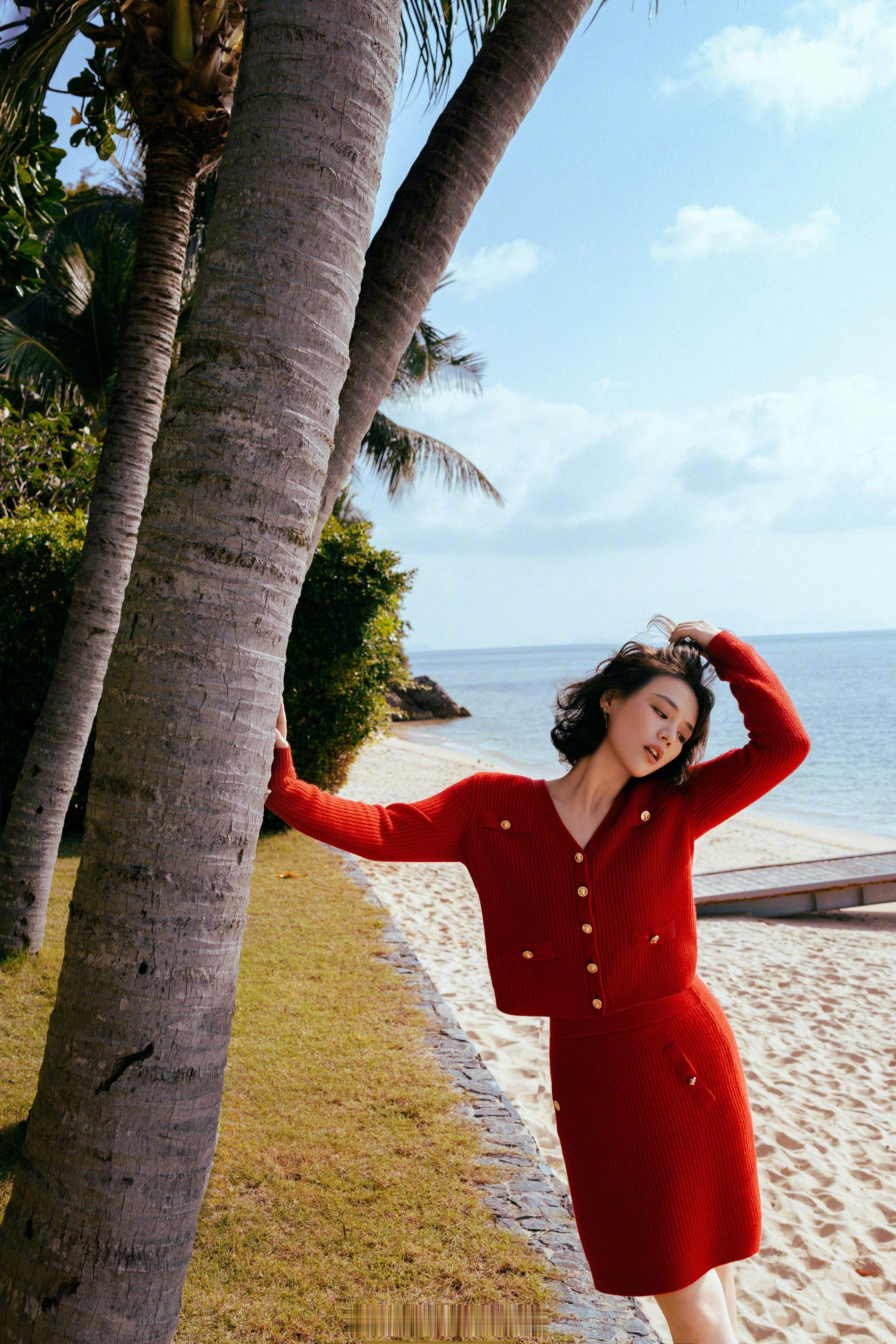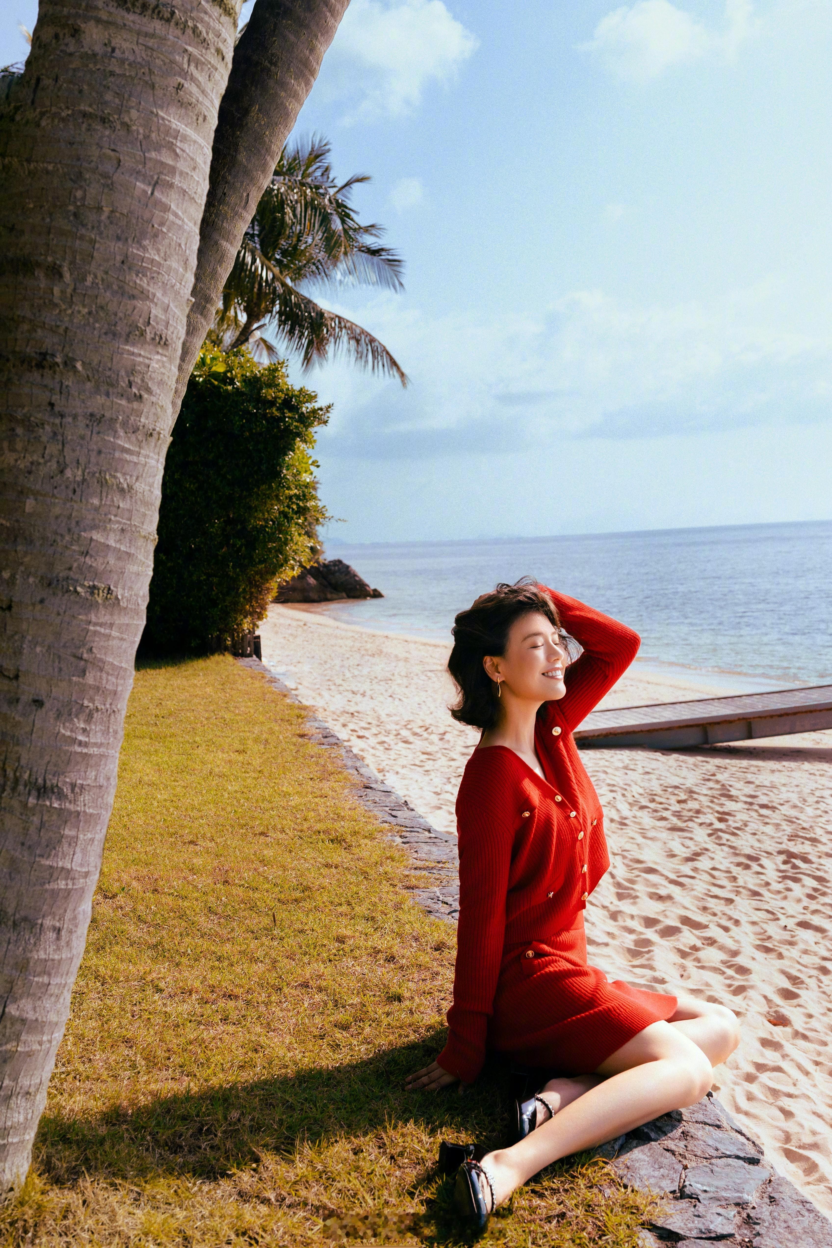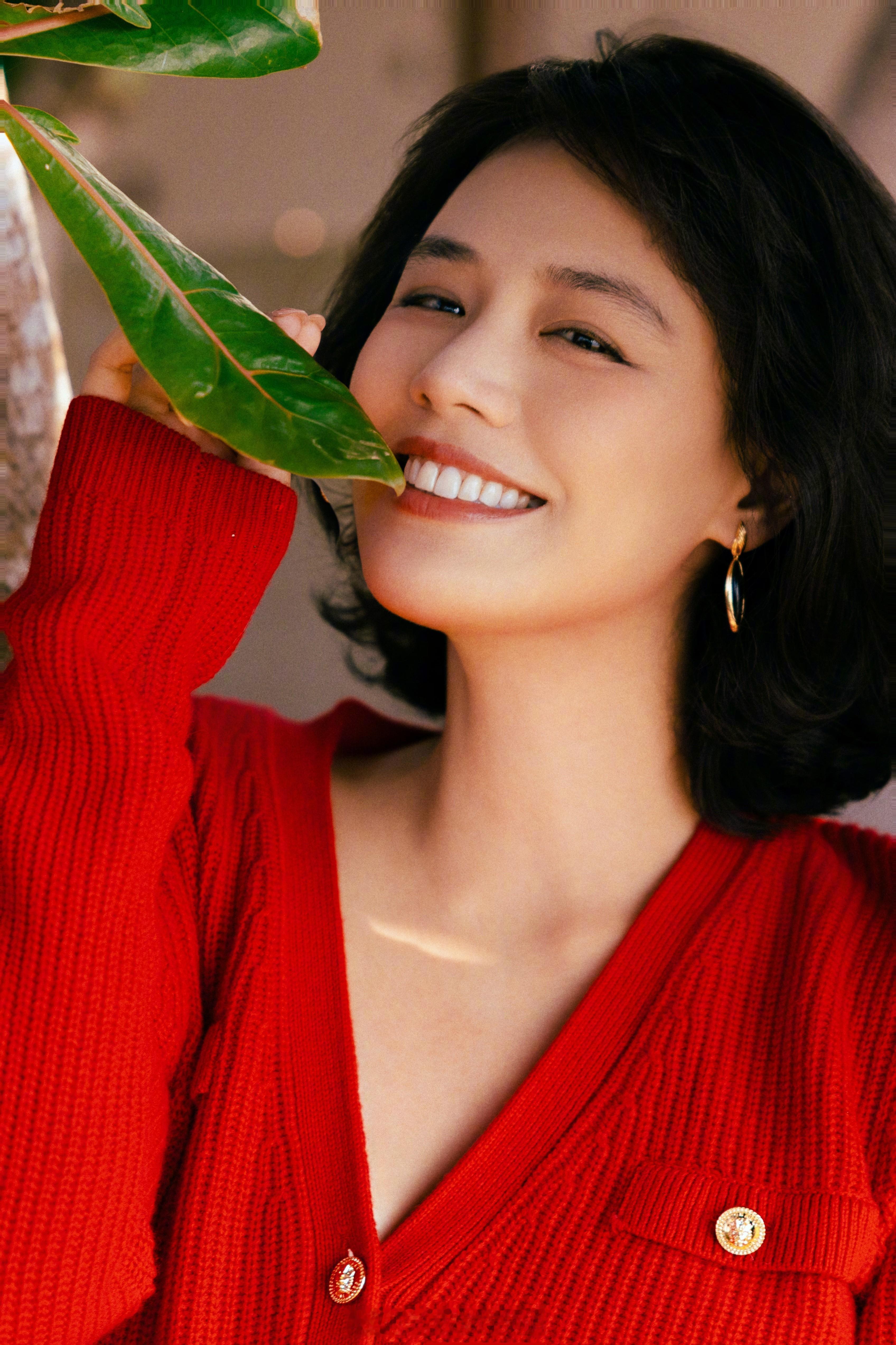 马思纯红色穿搭挺美的