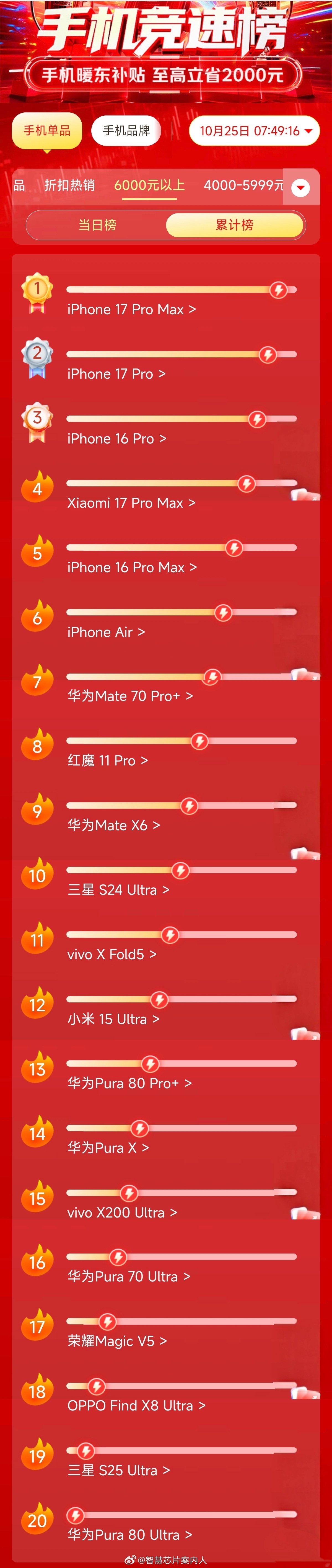 京东6000+累积前20,大家参考。这个档位依然是果和🌸的主场。