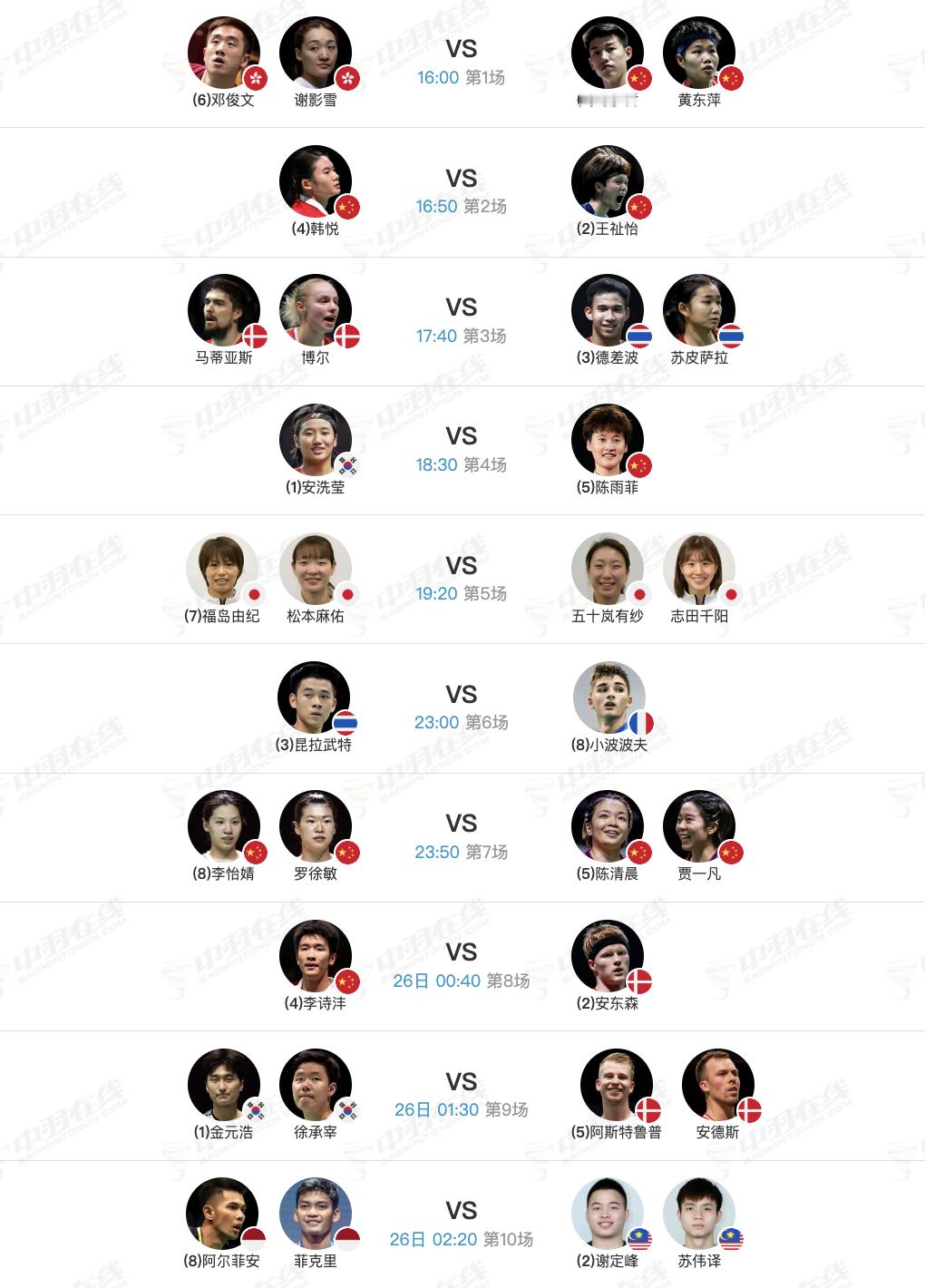 2025年法国羽毛球公开赛 10月25日半决赛赛程,上半场16点开赛,下半场23点开赛: