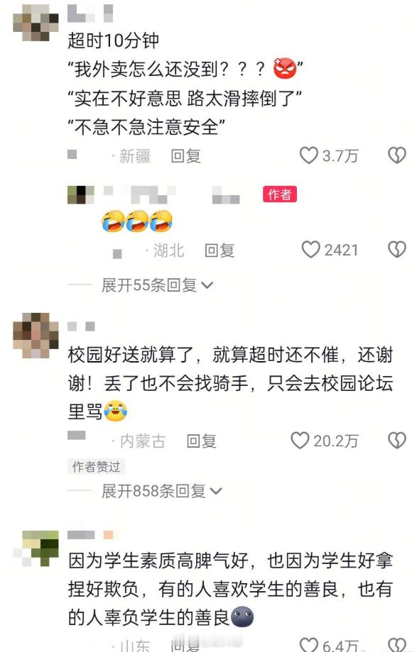 终于理解为什么外卖员都爱接学校的单了[跪了]
