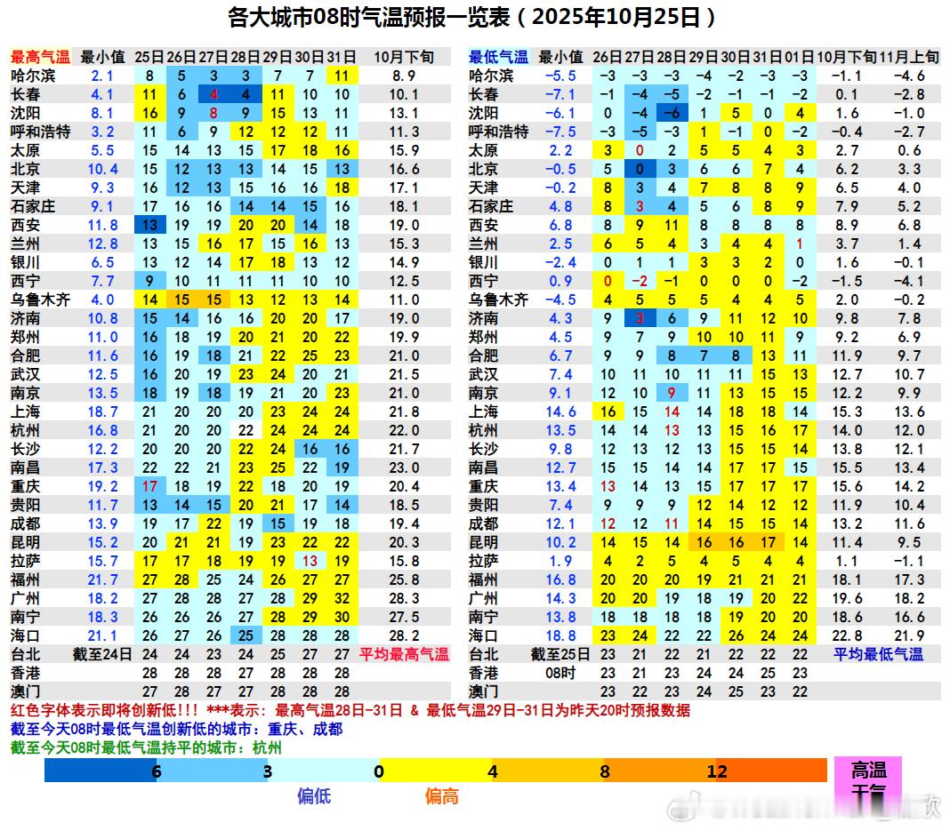 【气温创新低】今晨最低气温,重庆沙坪坝13.4℃,成都温江12.1℃,创立秋后新低。未来没有大规模创新低浪潮,但因为昼短夜长,光照减少的自然变化,气温微创新低还会层出不穷。明后两天,西宁气温可能是立秋后首次破零。