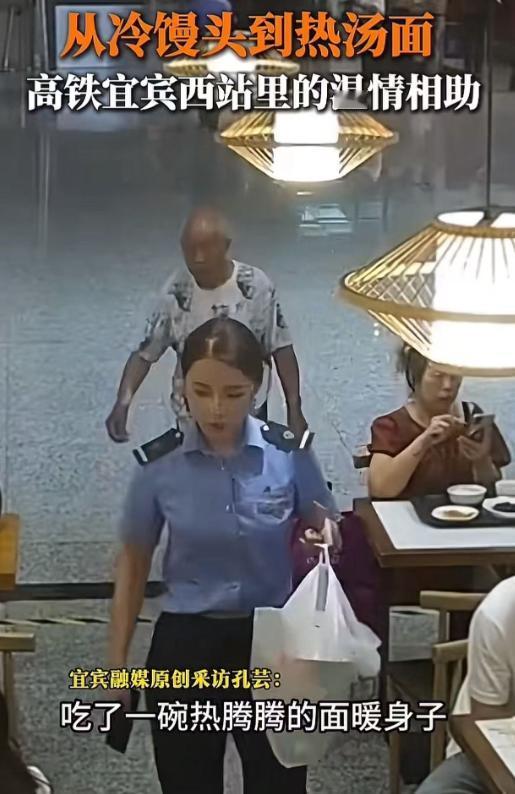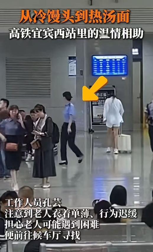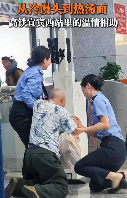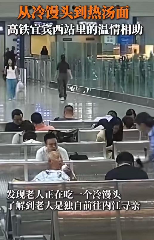 你的举手之劳却暖了老人的心房!10月24日报道,四川宜宾,一位七旬老人在问完车次问题后,就坐在候车室里啃着随身带的馒头,这时,刚才被询问的工作人员突然找到了老人,不由分说的就要带老人往外面走,而出去之后,老人当场向工作人员下跪致谢。 10月24日中国青年报道,四川宜宾高铁站,一位衣着单薄的老人走进候车大厅,他佝偻着身子,手里提着个破旧的塑料袋,那是他的全部家当。 75岁的老人姓张,从农村出发,准备去内江投奔亲戚,他小心翼翼地走到服务台,向工作人员询问车次信息,得到答复后老人找了个角落坐下,从塑料袋里掏出一个硬邦邦的馒头,就着凉水慢慢啃起来。 这一幕恰好被刚刚为他解答问题的工作人员孔芸看到了,她注意到老人身上那件薄薄的外套,在这个气温只有几度的天气里,根本挡不住寒风,更让她揪心的是,老人啃着的馒头已经发硬,每咬一口都显得格外费劲。 孔芸越想越不对劲,她跟同事交代了一声,便在候车厅里寻找起老人的身影,很快她在角落里找到了正在吃馒头的张大爷。 孔芸蹲下身子,轻声询问:大爷,您这是要去哪儿啊。 张大爷抬起头,眼神里满是疲惫:去内江,找我侄子。 原来张大爷的老伴去世后,他一个人在农村生活越来越困难,儿女都在外地打工很少回家,无奈之下他只能去投奔在内江的侄子,为了省钱他带了几个馒头当干粮,打算在路上对付着吃。 听完老人的遭遇孔芸心里一阵酸楚,她二话不说,拉起老人就往站内超市走:大爷,走,咱们去买点吃的。 老人连忙摆手:不用不用,姑娘,您太客气了。 可孔芸哪里肯听,她挑了泡面、面包、八宝粥,还有一些零食,结完账又带着老人去了站内的面馆:大爷,您先吃碗热面,暖暖身子。 一碗热腾腾的牛肉面端上来香气扑鼻,张大爷的眼眶瞬间红了,多久了他都没吃过这么热乎的饭菜了。 吃面的时候,孔芸查了查内江的天气预报,发现那边正在下雨,她又跑去买了把雨伞:大爷,内江在下雨,您带着伞下车的时候用得上。 这时其他工作人员也知道了这件事,大家纷纷行动起来,有人买了保暖内衣,有人准备了常用药品,还有几个年轻人凑了些零钱,用红纸包好,悄悄塞进了老人的袋子里。 面对这群素不相识的年轻人,张大爷再也控制不住情绪,他颤巍巍地站起身,突然扑通一声跪在地上,老泪纵横:谢谢,谢谢你们这些好心人啊。 孔芸和同事们赶紧上前搀扶:大爷快起来,这算什么啊都是应该做的。 送老人上车的时候,孔芸还不忘叮嘱:大爷,您到了给家里人报个平安,路上注意身体。 张大爷坐在车上,透过车窗看着站台上挥手的年轻人,眼泪又流了下来,他想起自己的儿女,已经很久没有这样关心过他了,可这些陌生人却给了他久违的温暖。 事后有记者采访孔芸,她只是淡淡地说:谁家都有老人,看到老人有困难,帮一把是应该的。 这件事很快在网上传开,网友们纷纷为宜宾西站的工作人员点赞,有人说:看到老人下跪那一刻,眼泪止不住地流,还有人感慨:现在这样的好人太少了,为这些年轻人的善良点赞。 其实善良从来都不需要理由,当您看到需要帮助的人,伸出援手就是最好的选择,宜宾西站的这群年轻人,用他们的行动诠释了什么叫人间温情。 麻烦看官老爷们右上角点击一下“关注”,既方便您进行讨论和分享,又能给您带来不一样的参与感,感谢您的支持!