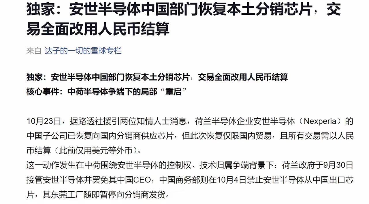 说句实话,大家可能要失望了! 荷兰学老美强盗行为强抢在荷兰总部的安世中国以为中国的反制会让荷兰俯首称臣,乖乖把安世中国交还给闻泰科技,其实然并卵。 这边荷兰刚刚和国内通完电话,背后马上上刀子捅。直接以荷兰安世总部向全球客户发电称,因总部不再掌控来自中国工厂的生产流程,所以无法确保中国工厂所产芯片的质量,意思很直白,就是告诉大家,荷兰安世已经和中国的安世中国分家了,在中国生产的东西他们不保证质量! 说实话,荷兰还真的是什么事都敢干啊,这招釜底抽薪别说还真的有效。据资料显示,荷兰在发布这条致全球客户的通告后,已经有多家之前使用安世中国芯片和其他配件的订单交给了台积电。 为什么荷兰要干这种杀敌一千自损八百的勾当?国内的安世中国不是掌握了封装测试、部分技术研发。虽然国内安世负责大部分甚至高达70%的封装测试,但是荷兰在芯片设计、晶圆制造以及销售链和品牌控制这些关键技术和渠道全部占优势。 而且要知道安世半导体核心分为四个部分,分别在四个国家。荷兰负责研发,英国和德国主要负责生产,而中国的核心定位是负责封装和测试。所以大家别庆幸的以为国内的中国安世可以在没有荷兰的安世中国后依然会过得很好!这种乐观的态度反而会把事态造成偏离本质的后果。 荷兰敢以强盗行为那么做,也就是看准了这一点。 那么中国安世就这样认栽了?当然不是。刚刚说了,荷兰用的是杀敌一千自损八百的馊招,中国安世如果就这样被拿捏也就不是中国安世了,中国虽然在部分渠道、晶圆制造和芯片设计上不占优势,但又不是完全没能力,只是需要一个时间调整而。 在荷兰向全球客户发出不实言论后,中国安世也发出了《致客户信》,对荷兰的不实言论进行反驳。同时安世半导体中国部门已经恢复本土分销芯片,交易也全面以人民币结算。这也算是这几天紧张的“安世”话题一个好的消息吧! 所以,到目前为止,乐观点是好坏参半,事情还没有糟到无法处理的地步。虽然荷兰跟着美国后面使绊子,让闻泰科技的安世中国受到了不少损失,但是中国有一句话叫做“乾坤未定,你我皆是黑马。” 世上本无路。走多了就是路了。别忘了当初在光刻机想封闭咱们的事,如今,咱们不是一样把他们甩在后面了?