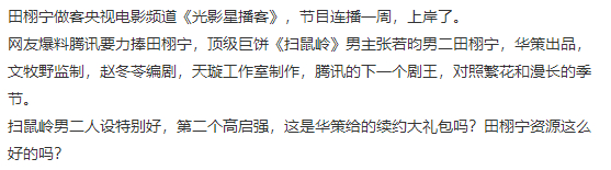 网传张若昀田栩宁将合作扫鼠岭,咱就说两位帅哥的合作谁不期待呢,还是坐等官宣的见面啦~