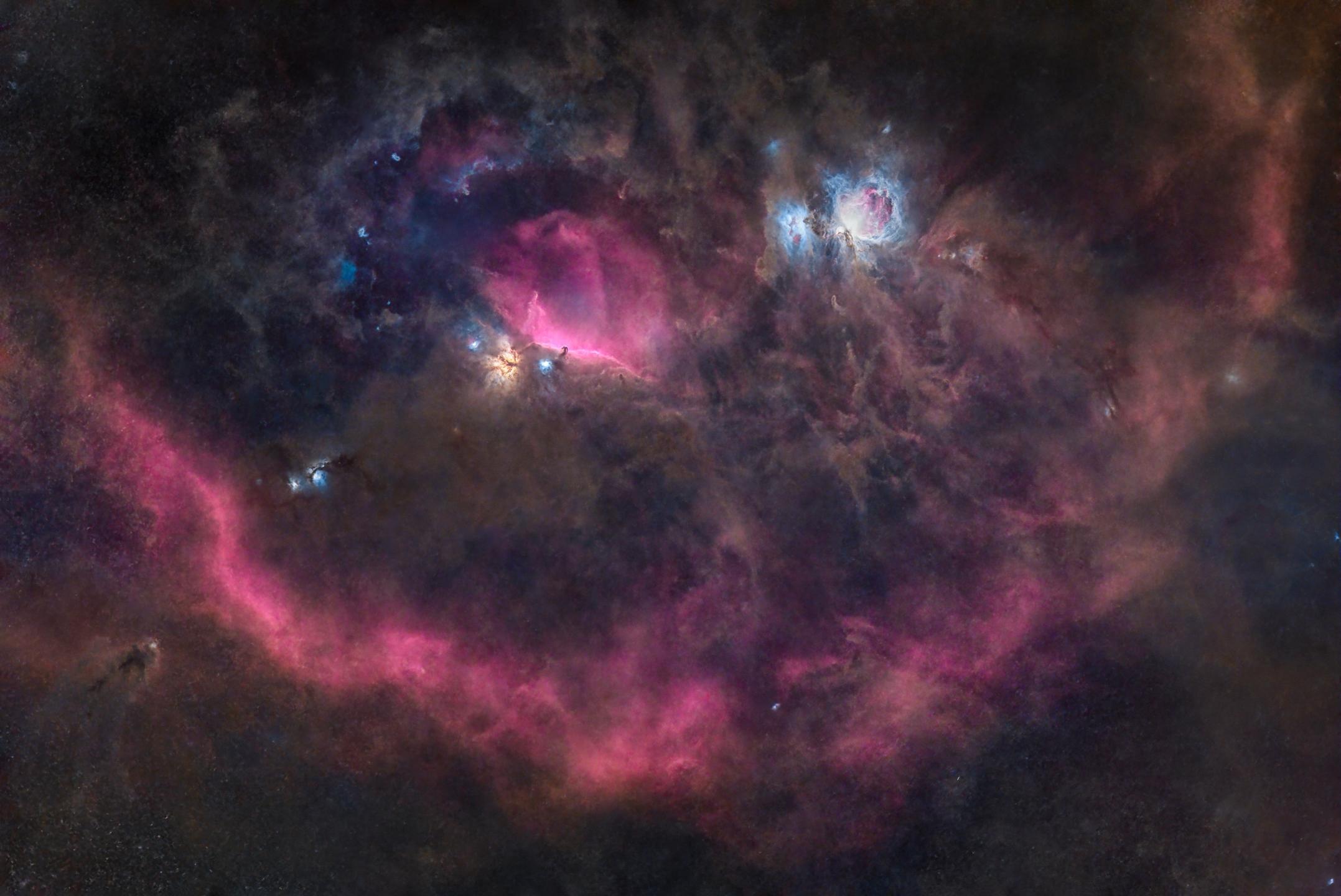 老蛙100mm微距镜头首张深空猎户座星云。老蛙100mm微距镜头首张深空开光图猎户座大星云来了🌌🌌🌌 别人都是出来痛苦熬夜,只有我是出来修仙的[并不简单][并不简单][并不简单] 上次在后院拍了二十多小时的猎户座,由于光污染太高了,不满意。于是全删了,这次特意开车到二级区,就为了能最大化提取猎户座的暗星云~~