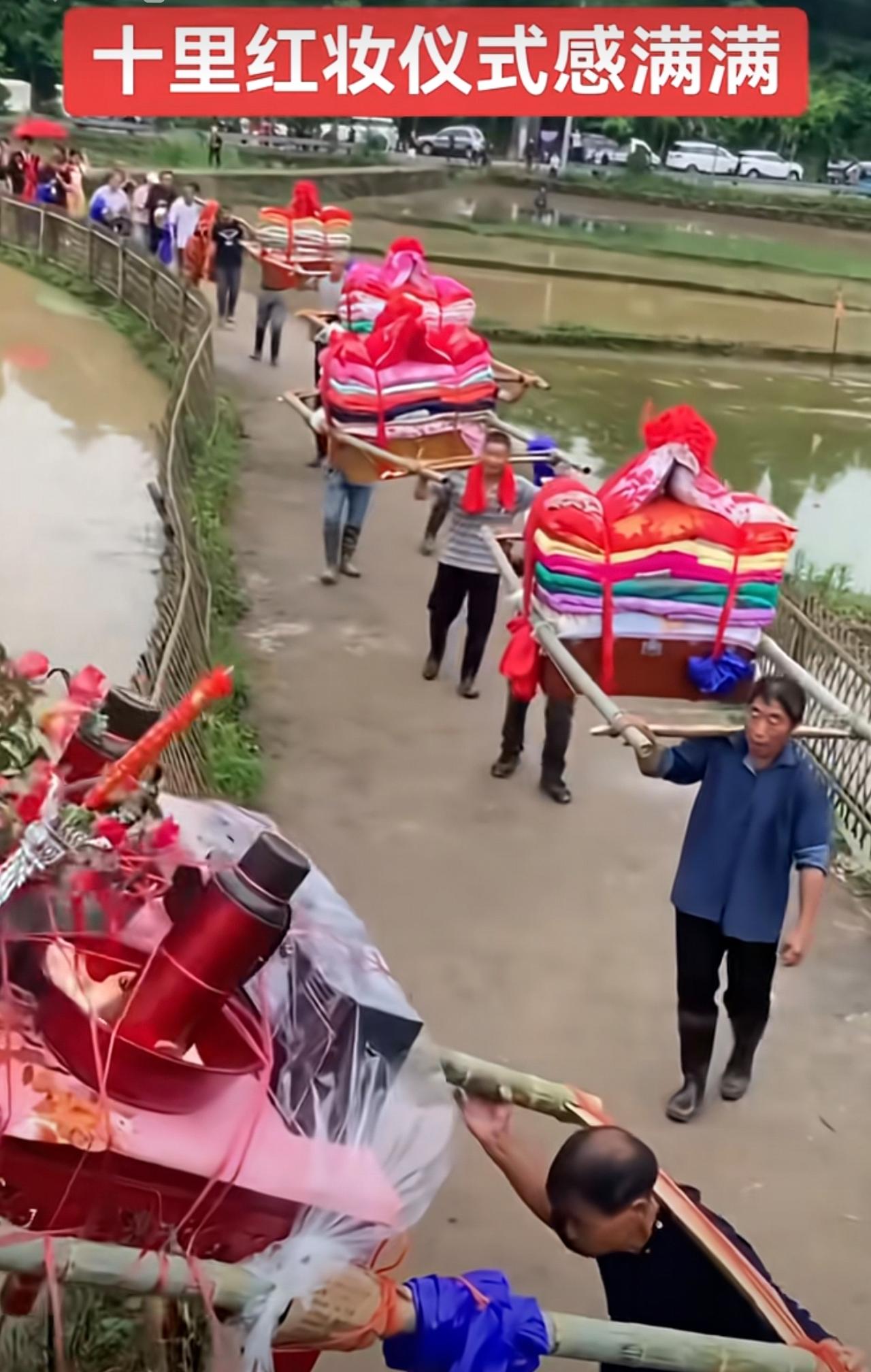 农村结婚十里红妆仪式感满满,一人结婚全村人帮忙,喜庆而热闹!农村婚礼 十里红妆 仪式感