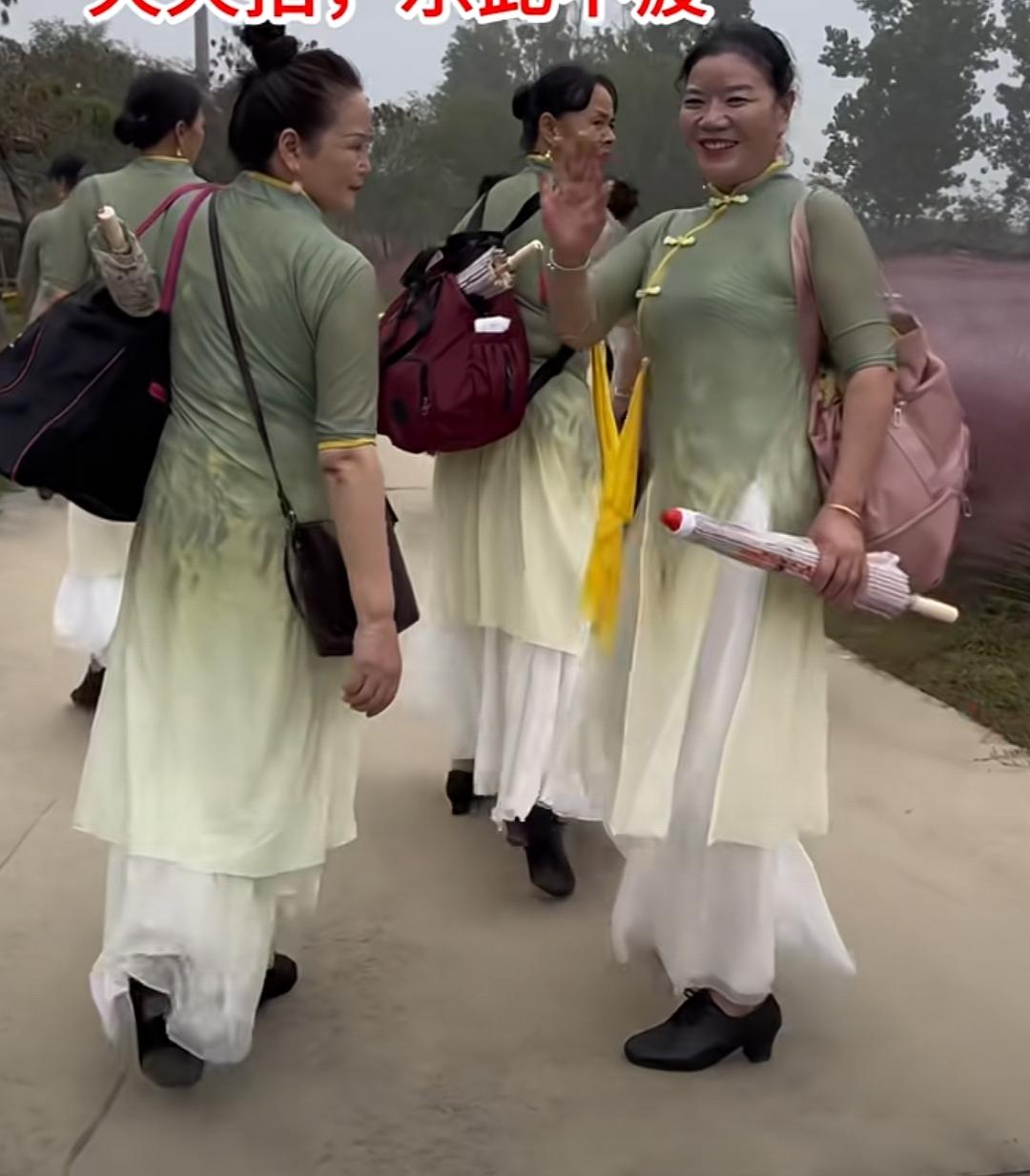 让一让!让一让!大妈们又出来展现风采啦,看不惯的麻烦绕道走哈! 大妈们身着整齐统一的服装,脚蹬清一色的黑皮鞋,背上背着大包小包,手中还握着纸伞,她们的团队精神着实令人赞叹。 一路上,大妈们笑容满面,神采奕奕,想来又是去拍照或是走秀了。为何大妈们总能守得住这份热爱呢? 别的方面你或许可以心存质疑,但中国大妈的这份自信,你不得不折服,年龄不足为惧,心态才是关键。
