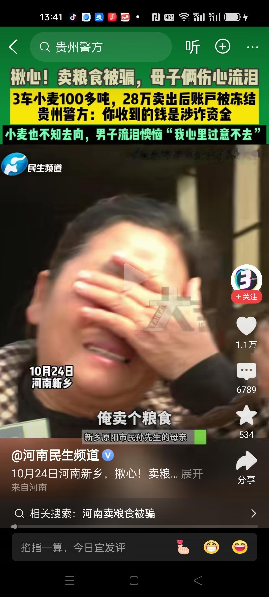 农户辛辛苦苦卖了3车小麦100多吨,收到28万货款,被银行冻结,警方说是涉诈资金。 真是离谱,卖东西是正常交易,还要去调查买方的钱是哪里来的吗?一个农民可能去查这些吗? 既然警方银行都知道是诈骗资金,为什么不冻结骗子的买方账户,却在一转账以后冻结卖方的? 现在警方应该去把卖主的麦子追回啊,搞得卖主,财货两空,真是飞来横祸