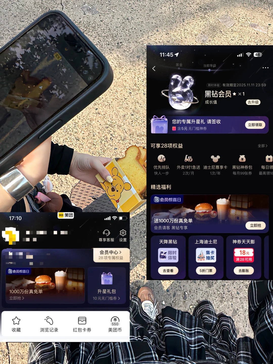 🎠:啊啊啊😍现在来美团有机会成为黑钻试用官啦!!🪄可以享受28项权益!!去迪士尼乐园还有尊享卡🌴简直不要太棒了!!咱们直接享有快速通道!!📲又美美出片又不用浪费时间排长队玩项目!!我爱你美团🤩🤩怎么不让我早点知道!!快传下去(☆_☆)