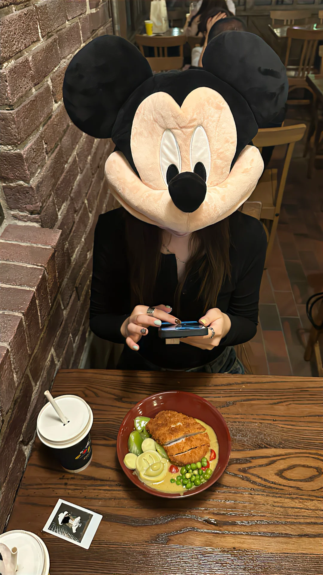 2️⃣在米奇好伙伴集市餐厅拍照(喊朋友帮你拍)戴上米奇头套不露脸炒鸡出片~