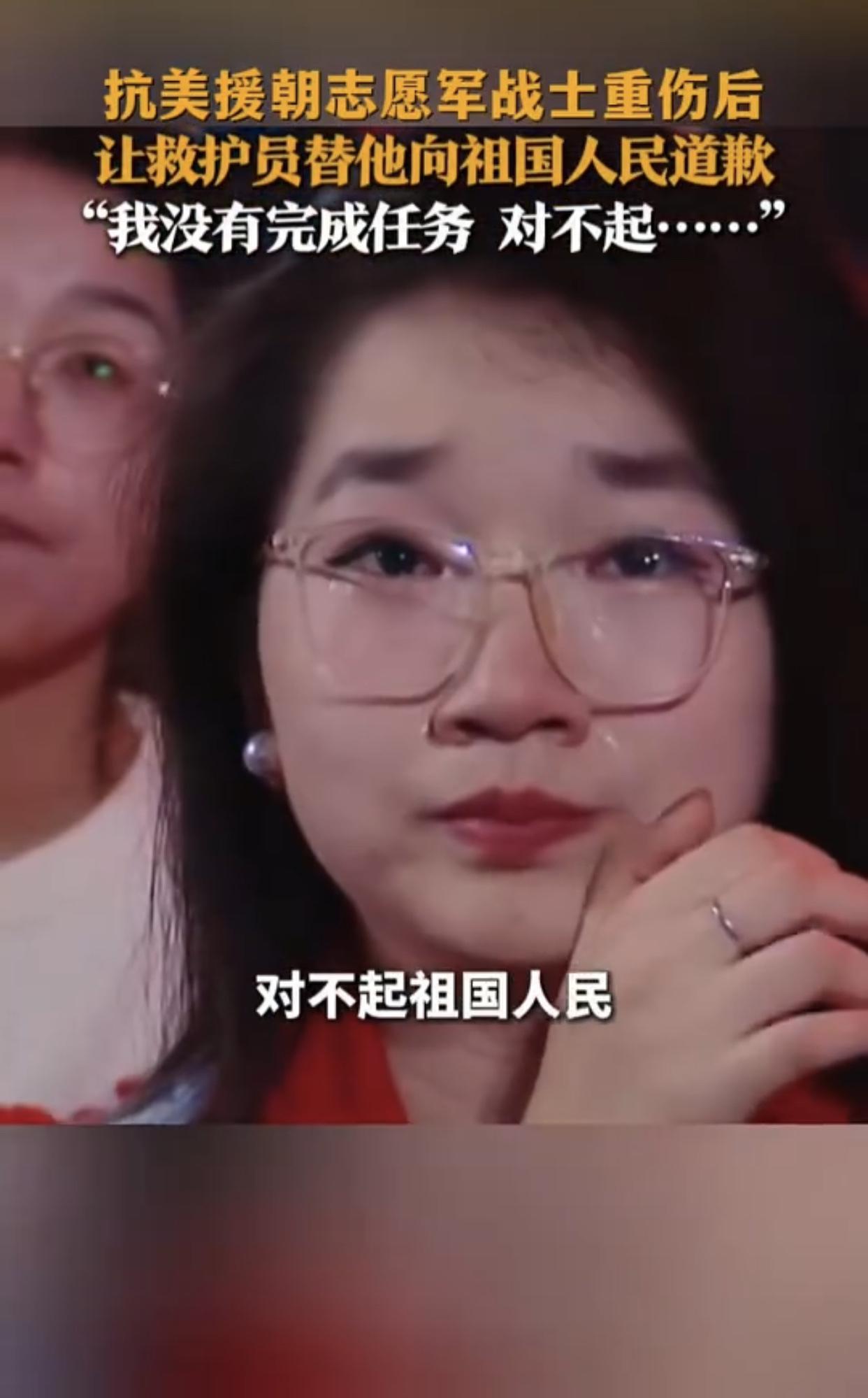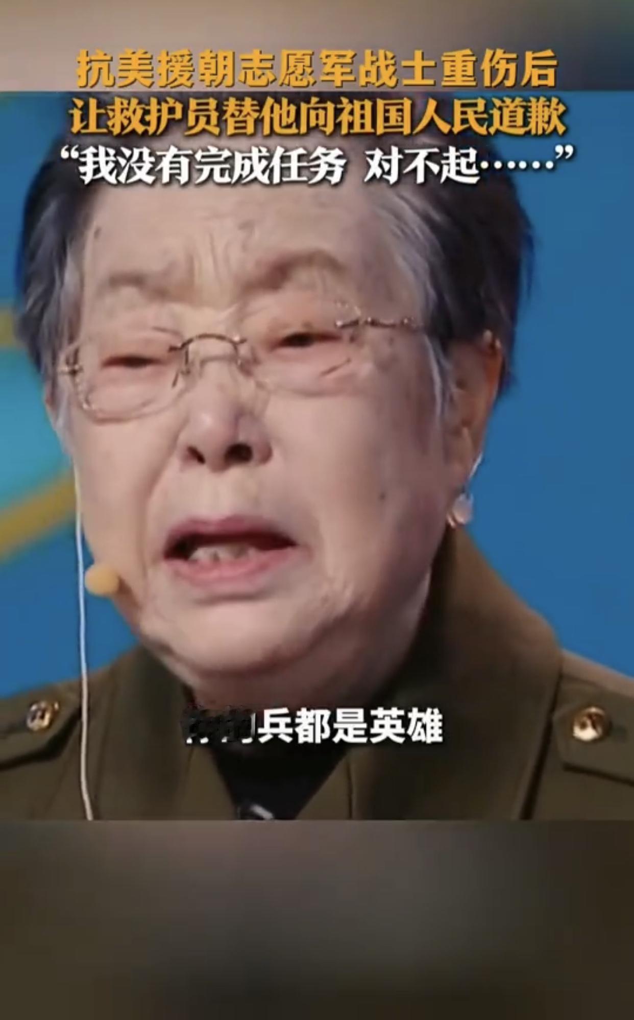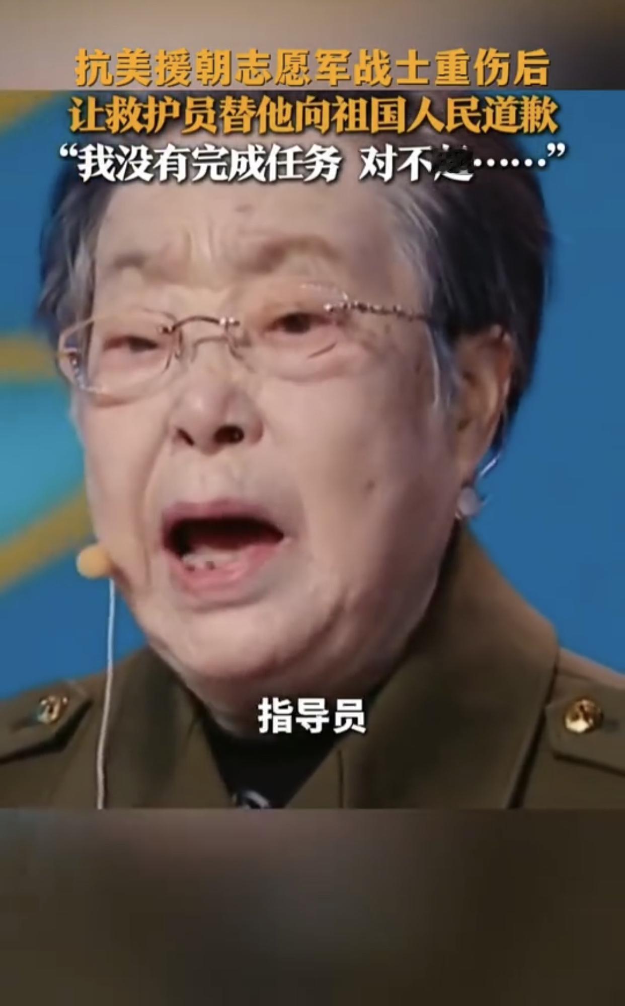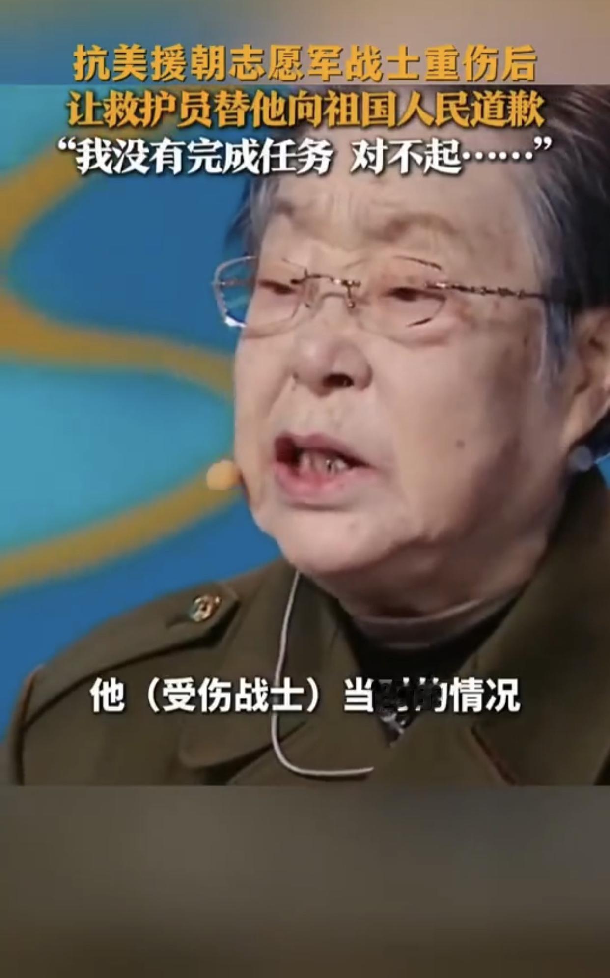 一位抗美援朝救护员讲述在朝鲜战场上的志愿军英雄: “他(受伤战士)的情况,嘴大概还剩三分之一,只有一个胳膊一个腿,他对我说,‘你回到祖国,一定要替我说,我对不起党,对不起毛主席,对不起祖国人民,我没有完成任务‘,我说,’指导员,你是英雄,你的兵都是英雄‘。” “75年前,你们告别家乡的温暖,奔赴冰天雪地的战场,以血肉之躯筑起抵御外敌的钢铁长城! 谢谢你们用生命捍卫祖国的和平,为我们换来这盛世安宁!”