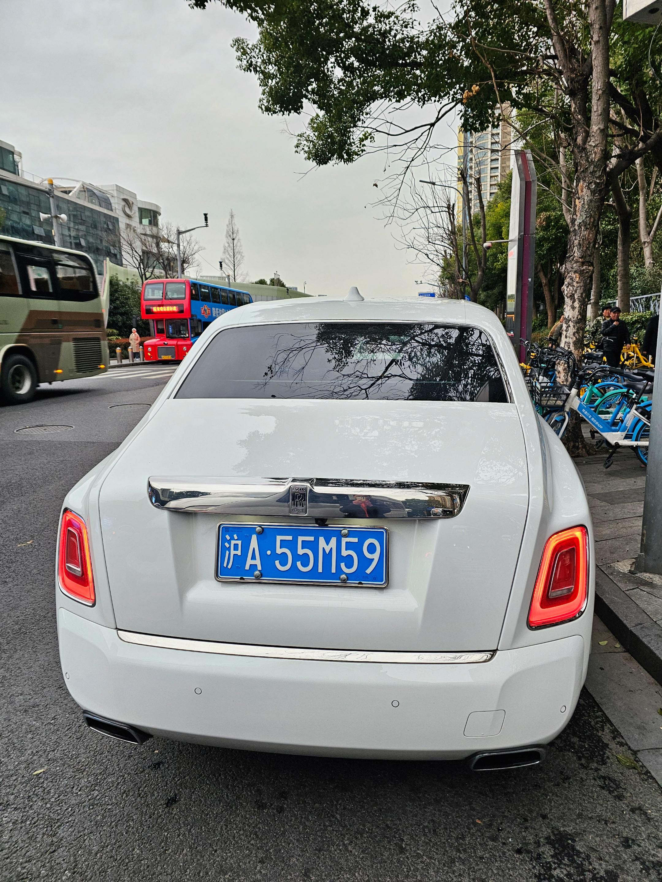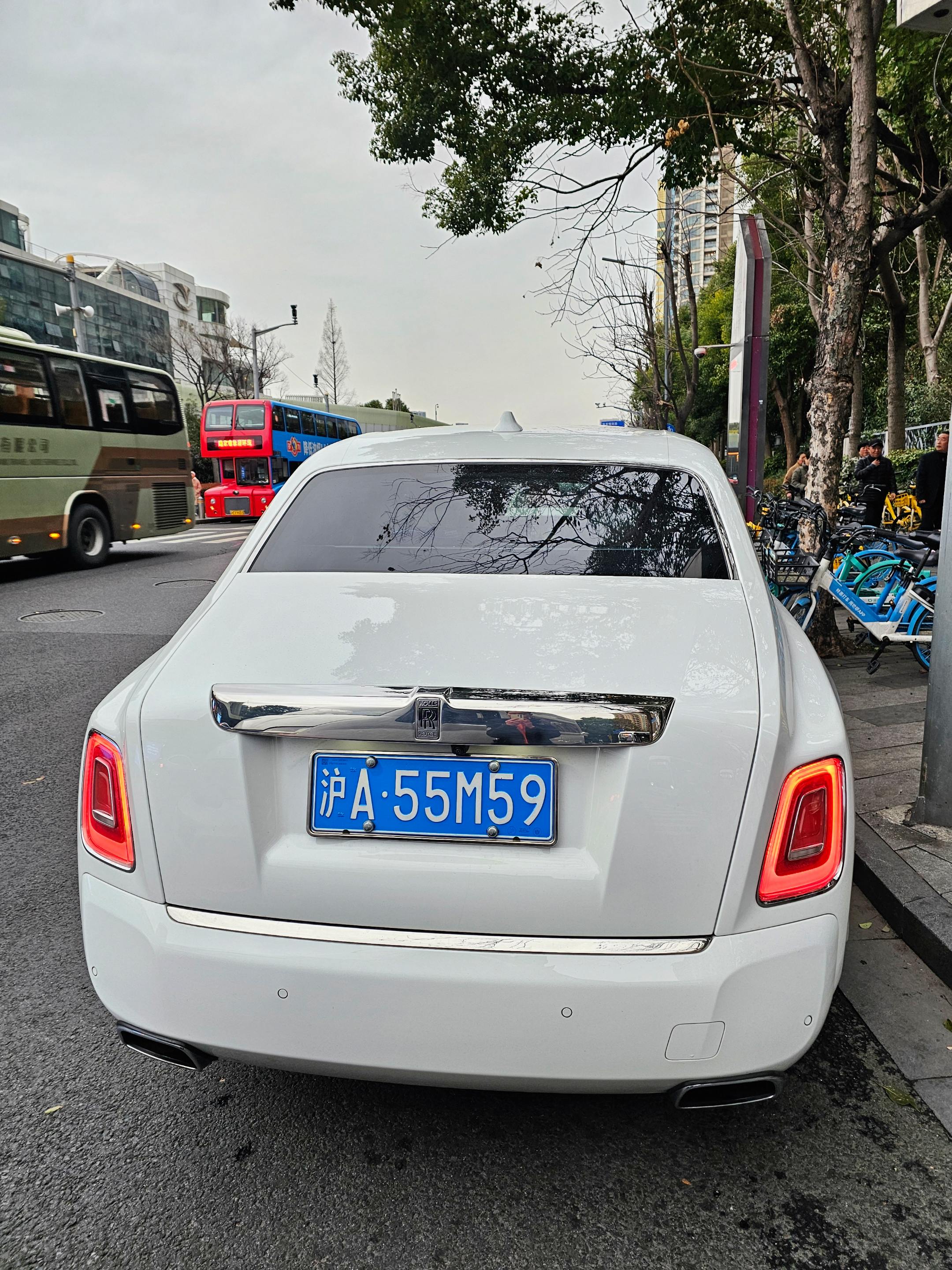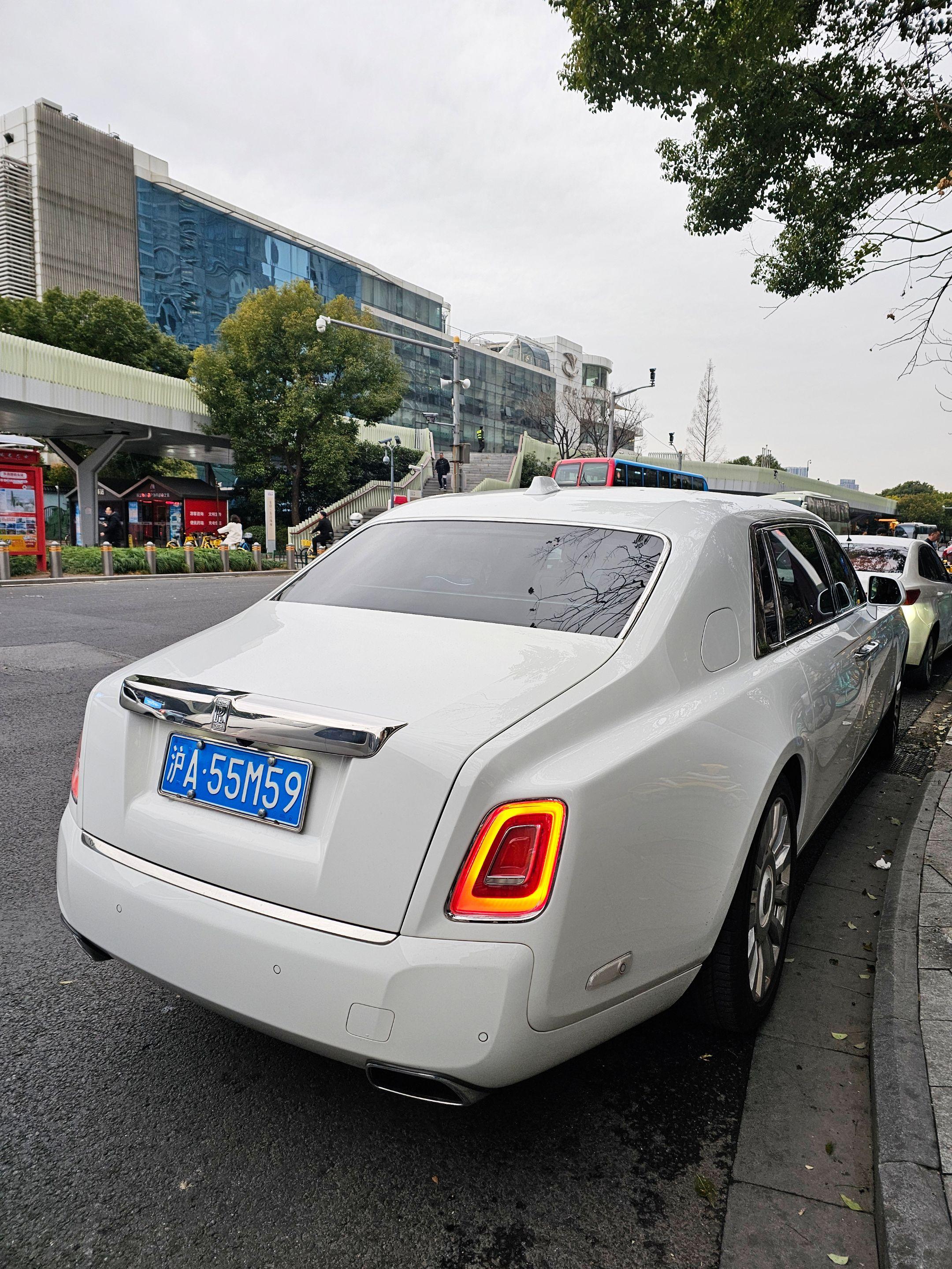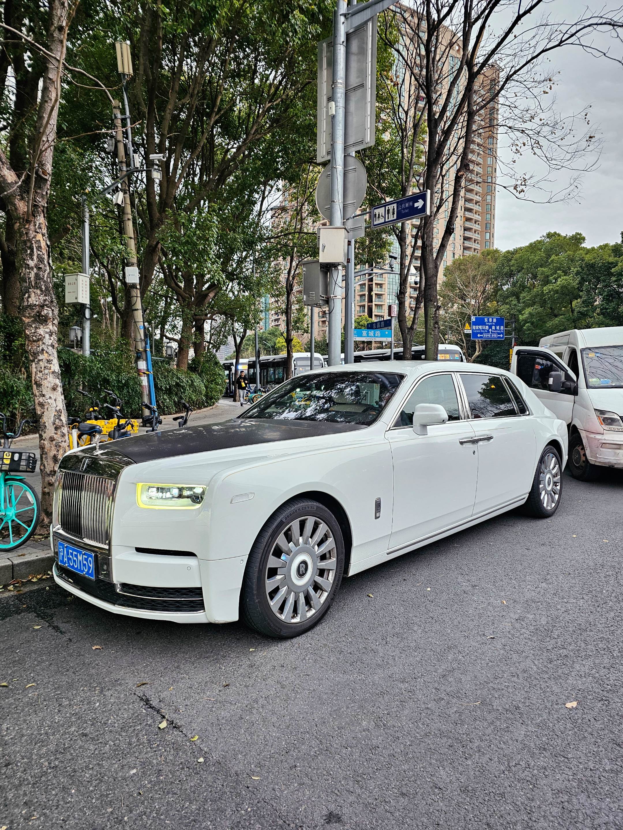 上海陆家嘴偶遇神秘大佬座驾劳斯莱斯幻影加长版,白色双拼色的外观配上22寸大轮毂奢华的内饰座椅,气场强大优雅霸气十足