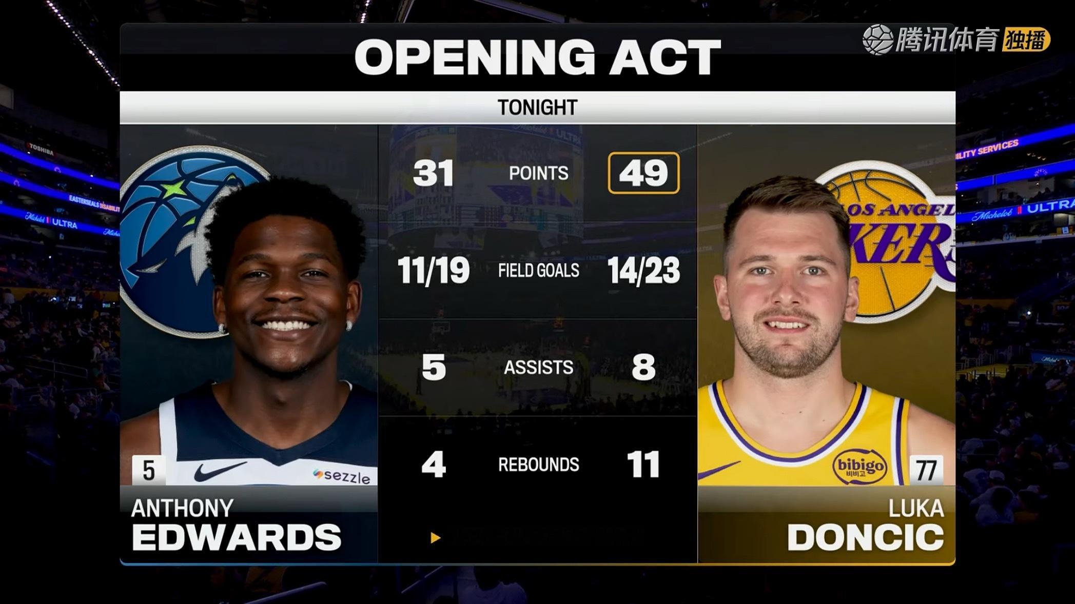 湖人队战胜森林狼赢得新赛季的首场胜利✌️东契奇再次轰下40+49+11+8森林狼