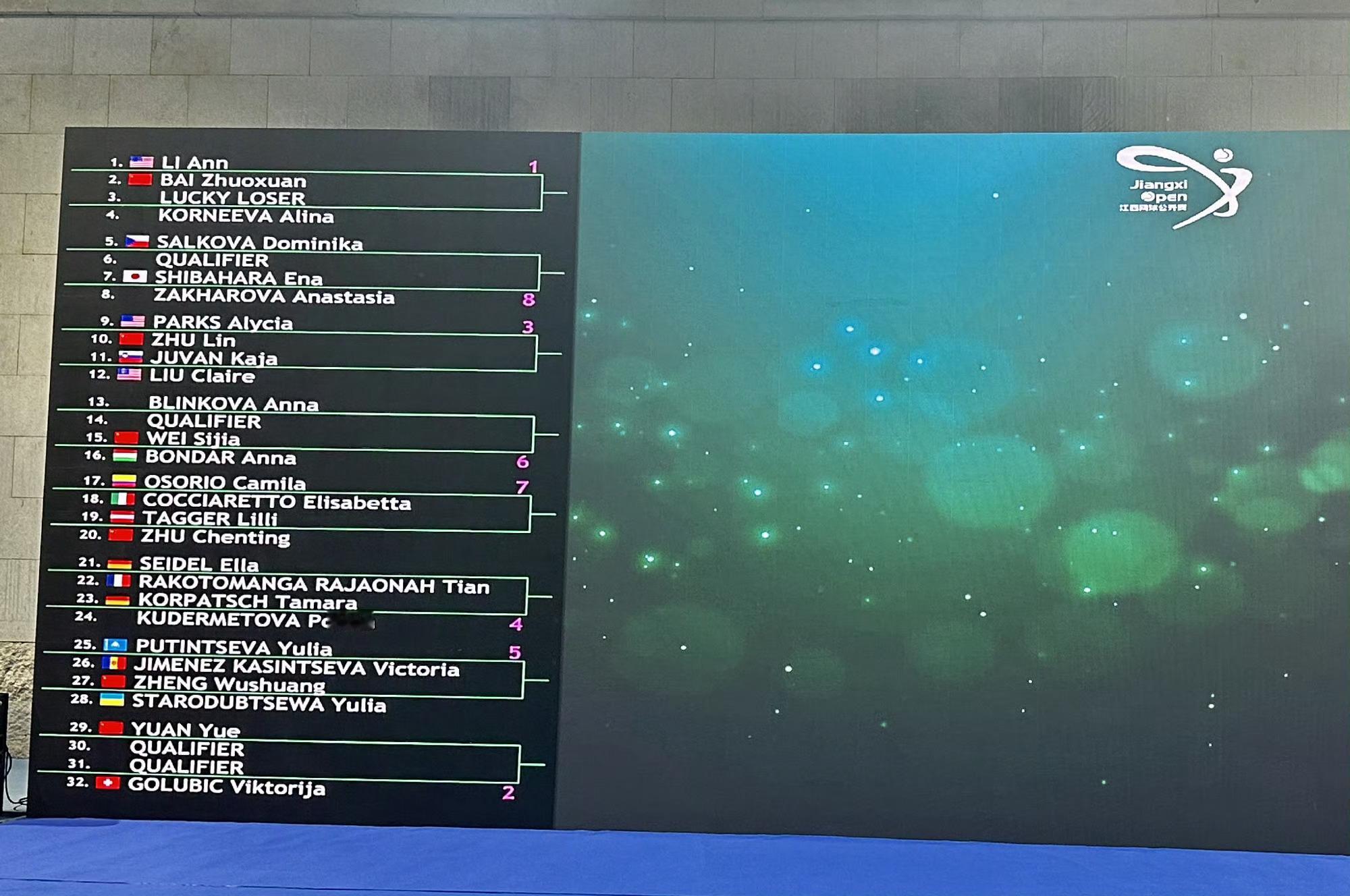 九江250赛女单正赛签表: