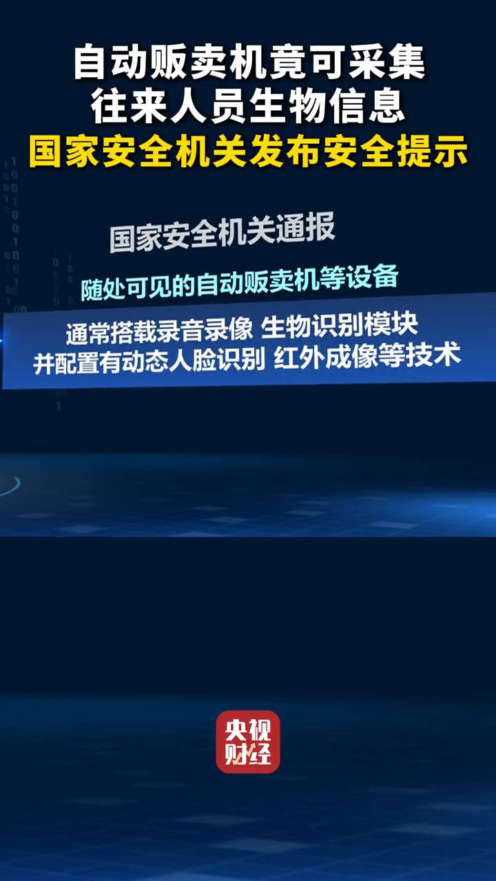 央视财经。 针对网络购物、刷脸支付等方面存在的安全隐患,国家安全机关发布了安全提示。随处可见的自动贩卖机等设备通常搭载录音录像生物识别模块,并配置有动态人脸识别、红外成像等技术,能够采集周边往来人员面部特征和使用者的虹膜纹路等生物识别信息。 个别设备开启刷脸功能获取人脸数据后,还会进一步要求用户提供手机号、性别、出生年月等个人隐私信息。若其后台连接的信息系统存在安全漏洞,可能被攻击者入侵进而引发数据泄露风险。