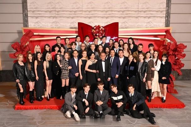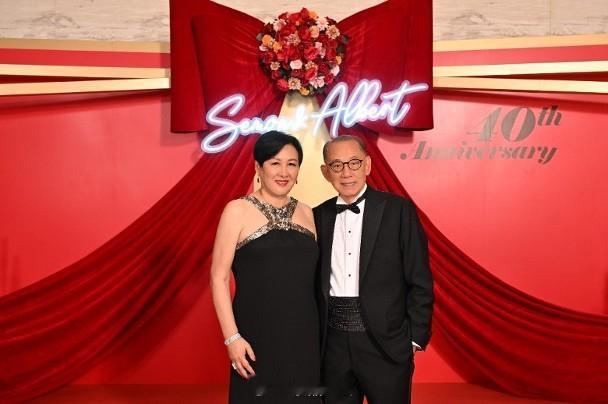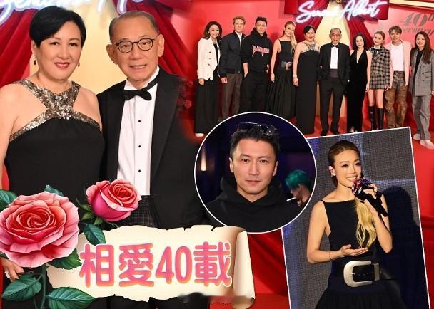 英皇集團主席楊受成與太太為慶祝結婚40周年,昨晚舉辦「40周年紅寶石婚晚宴」筵開超過20席招待政商娛樂界名人好友,其子女及一眾兒孫均有出席,公司旗下藝人謝霆鋒、容祖兒、蔡卓妍、鐘欣潼、張敬軒、關智斌、李幸倪、任達華、方中信、歐陽震華、毛舜筠、衛詩雅、陳家樂、周家怡等拉大隊到場支持,星光熠熠。