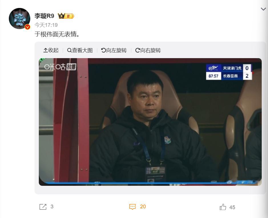 【今球讲】中超联赛 天津津门虎2比2长春亚泰 赛前又是“放水论”,赛中又是“于白旗”,从0-2到2-2,结果再次证明了我们可以像信任家人一样信任主队。另外我想和球迷说,如果总联想人情世故,生活就很难摆脱烂人烂事,我不一定是强者,但我一定不弱。天津津门虎vs长春亚泰