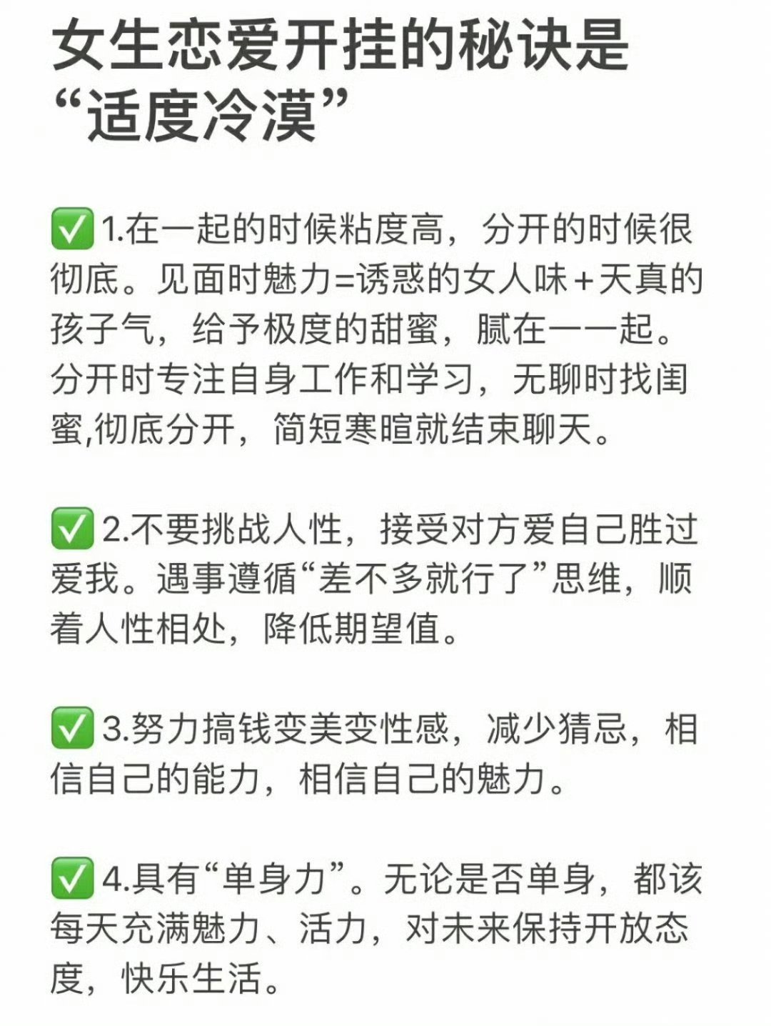 女生恋爱开挂的秘诀是“适度冷漠”。
