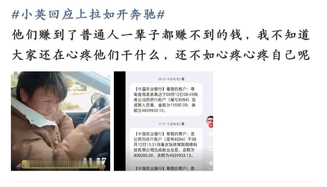 上拉如曾晒450万银行卡余额听说上拉如都开上奔驰了