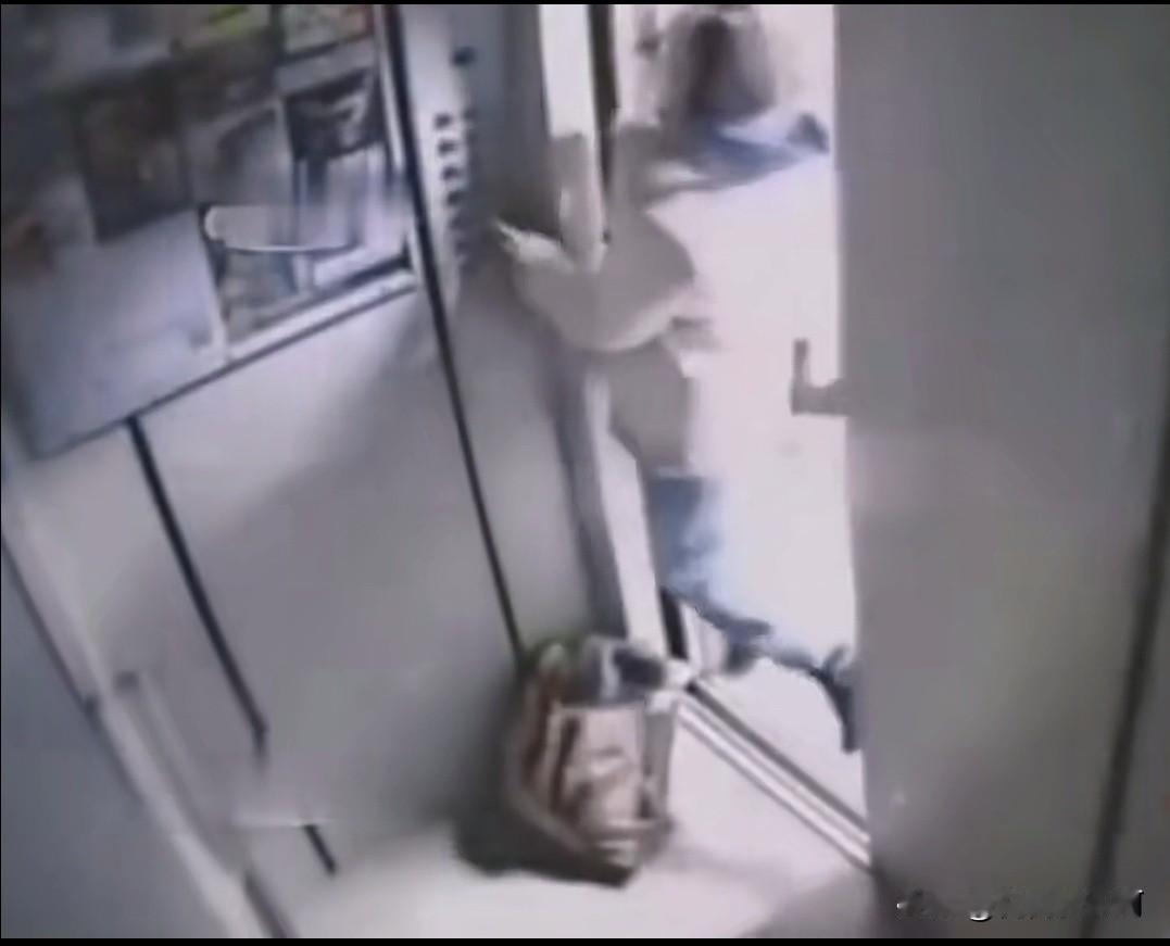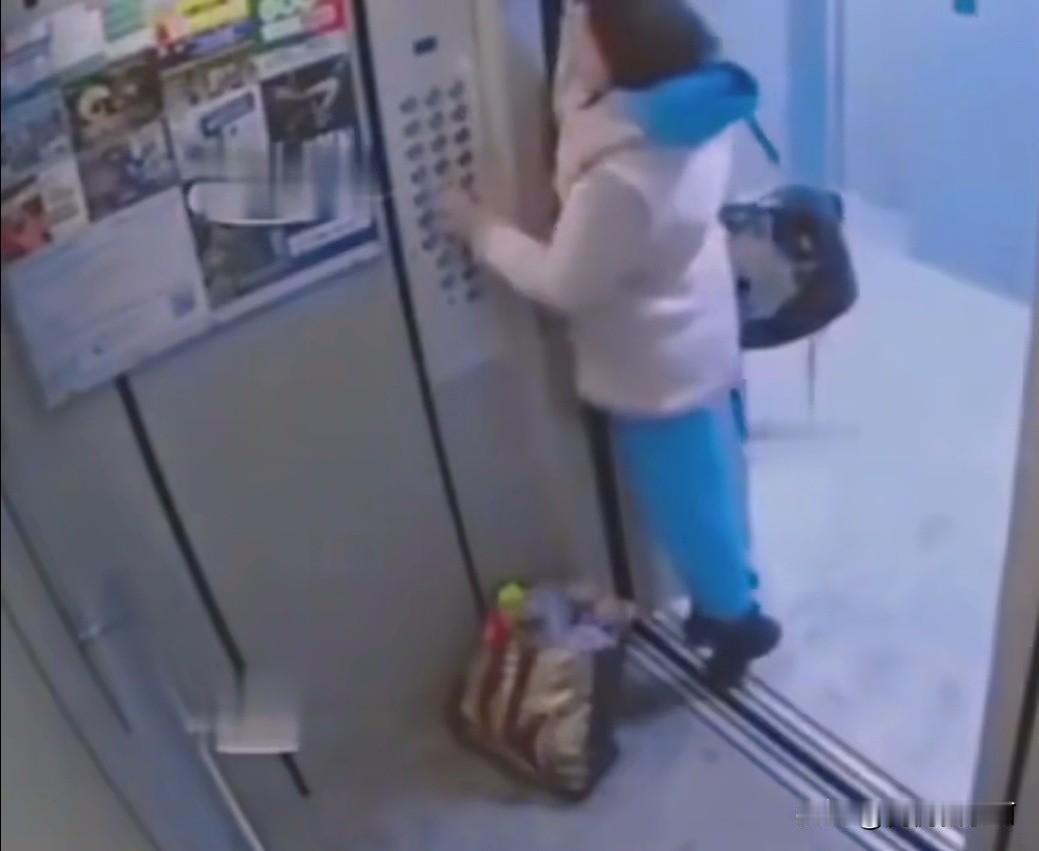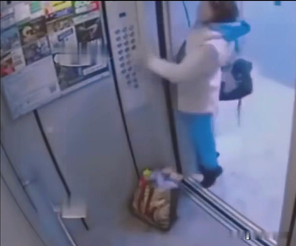 看!这位女士胸前衣服上的带子,卡到了电梯门的缝隙里,幸亏她头脑清醒,努力不让电梯门关上,假如电梯门关上,被别的楼层的人按下按键,那就危险了。 之前看过一个人牵着一只小狗,绳子的一端夹在电梯门,电梯一启动,连人带后都带到电梯的顶部,然后又摔下来。 所以说进电梯时,一定要把绳子、带子一类的东西弄好,千万别让电梯夹住!