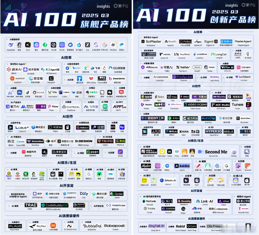 量子位最新发布2025Q3 AI 100榜单的AI开发层产品中,「旗舰100」中共有10个产品,其中9个产品全部增强Agent功能。
