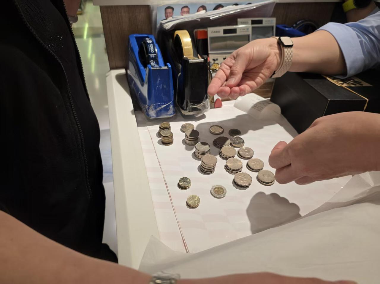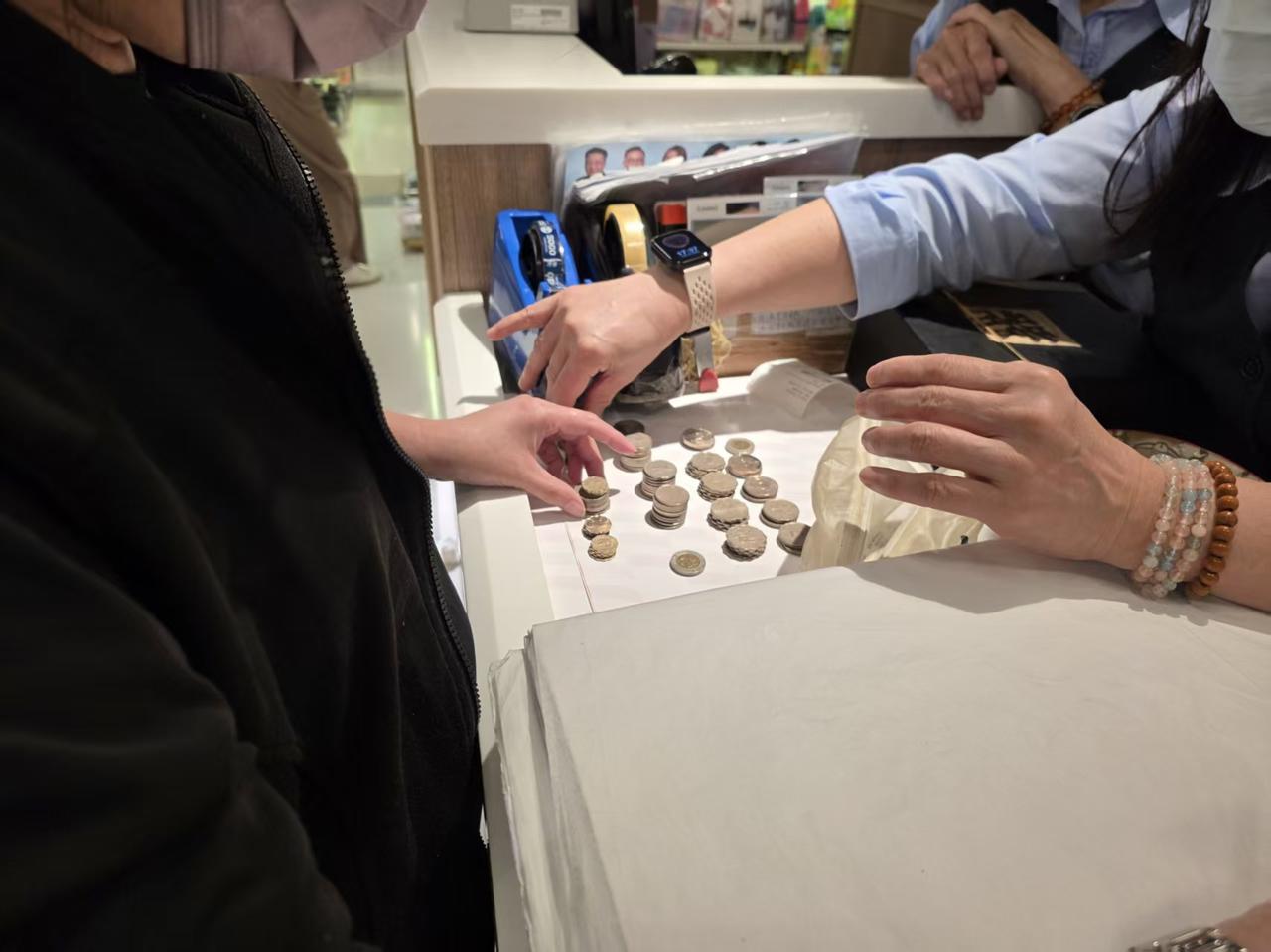 10几年前去香港,那时主要是用港币现钞买东西,手上不知不觉的积累了一堆硬币。这次去铜锣湾崇光百货转悠,打算买点东西,看中2只瓷器,就把这堆港币付给了收费员,她们很有耐心的在计算,没有表现出一丝不高兴。