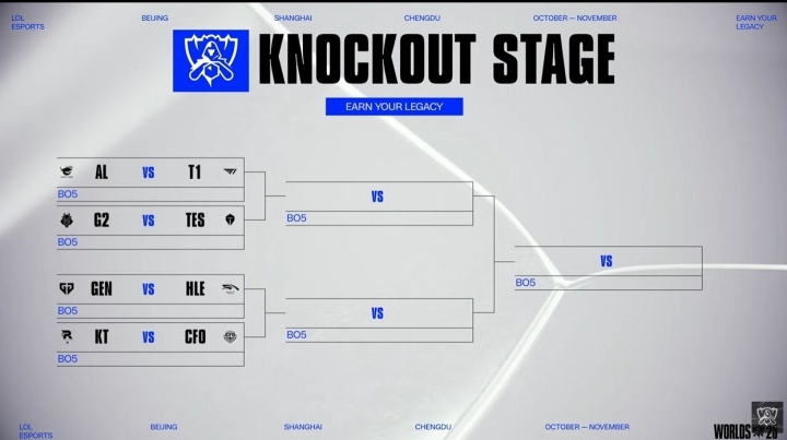 【英雄联盟S15八强:AL外战T1 韩国三支队伍扎堆下半区】 #AL打T1# #姿态抽签# S15八强对阵抽签结束,上半区的AL交手T1,TES抽到G2,下半区三支LCK队伍扎堆,HLE交手GEN,KT对CFO。