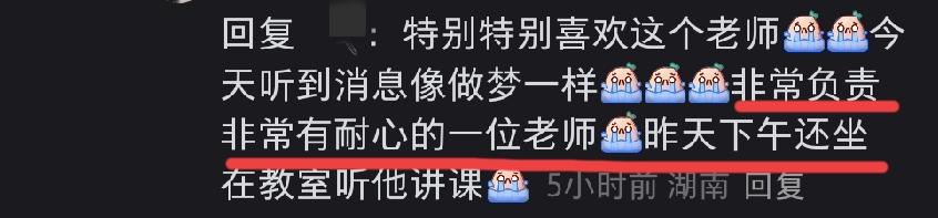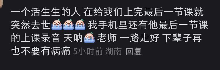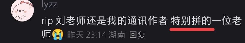 24号刚上完所授学科的最后一节课,25号湖南某高校计算机学院刘昊霖教授突发疾病离世,年纪37岁。 刘教授2015年毕业于四川大学计算机科学与技术专业,获得工科博士学位。 他去世前在湘潭大学任导师,湖南省青年骨干教师培养对象。 据称去年拿到面上,评上正高。 刘昊霖教授在同学们的印象里,是位尽职尽责、和蔼可亲的老师,工作很拼,也很有实力。 天妒英才!太年轻了,还不到40岁。大学老师并不像很多人以为的那样清闲,他们白天授课,晚上写论文,搞科研的更辛苦。 年轻人为了美好的未来拼搏,无可厚非,但要适量,更要爱惜自己的身体,千万别以生命的长度换宽度啊!