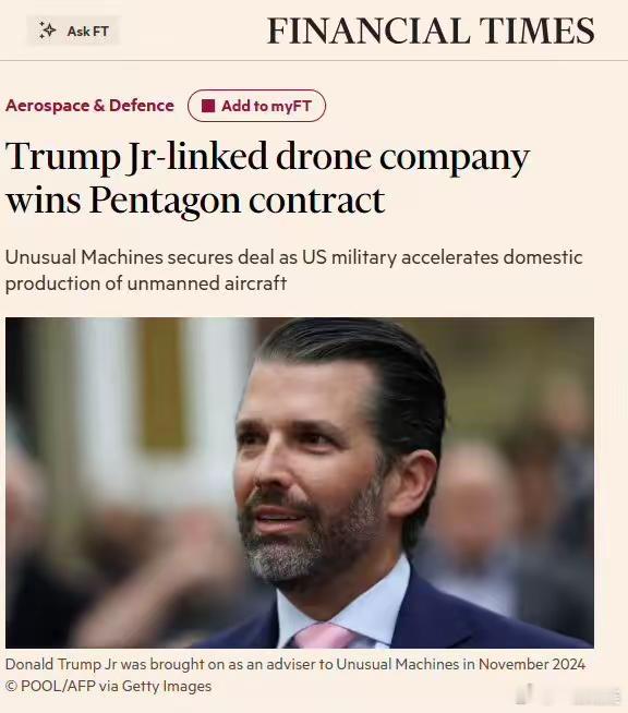 这个公司,赢得了迄今为止五角大楼最大的无人机零件供应合同。他,24年11月起,担任该公司投资者和顾问,持有约400万美元的股票!
