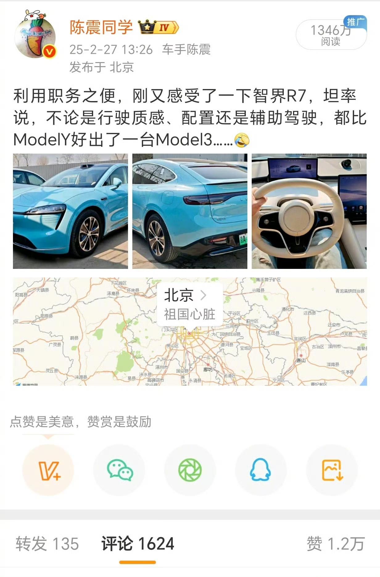 陈震:我说的有什么问题吗?然后此时此刻,智界新R7的ADS4表现更牛逼了,而国内版FSD的表现,简直拉胯到一言难尽! 然而智能辅助驾驶非常的牛,不等于车型好卖,决定一款车型好卖的因素实在是太多了,比如说品牌,特斯拉的品牌号召力是目前所有电动车里面最强的。 个人感觉智界新R7的配置可以不用那么高,把入门的价格再降一降,新车就能取得更好的销售成绩。 各位是怎么看的?欢迎评论区留言。