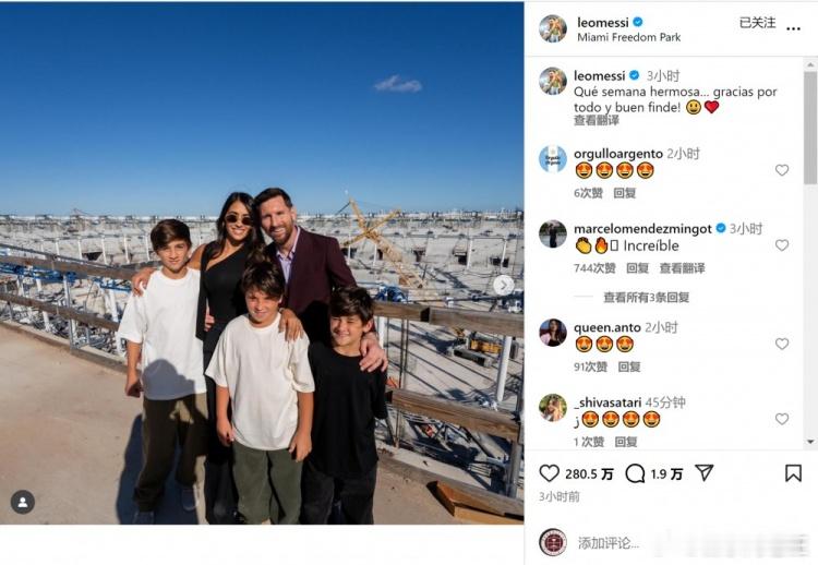 梅西社媒晒出续约和比赛的照片,配文:“多么美好的一周啊……感谢一切,周末愉快!”