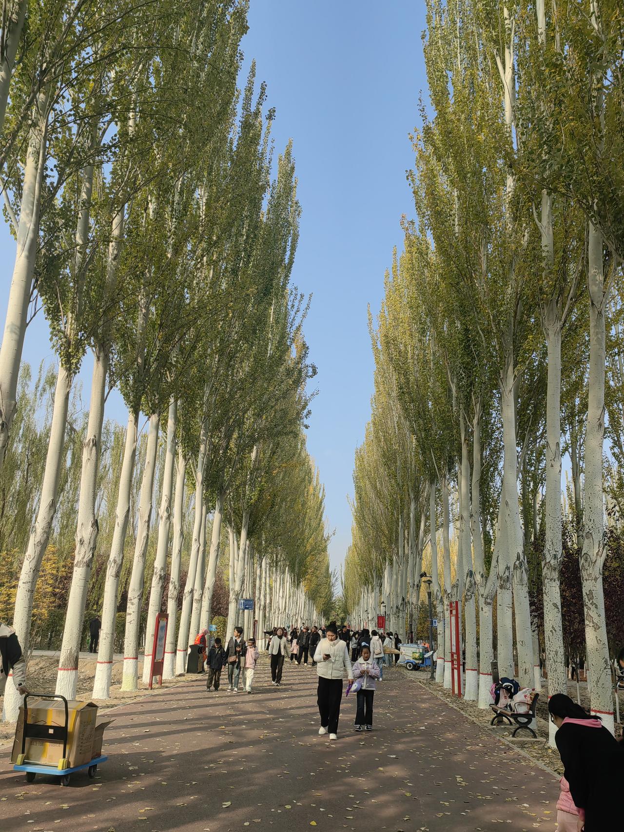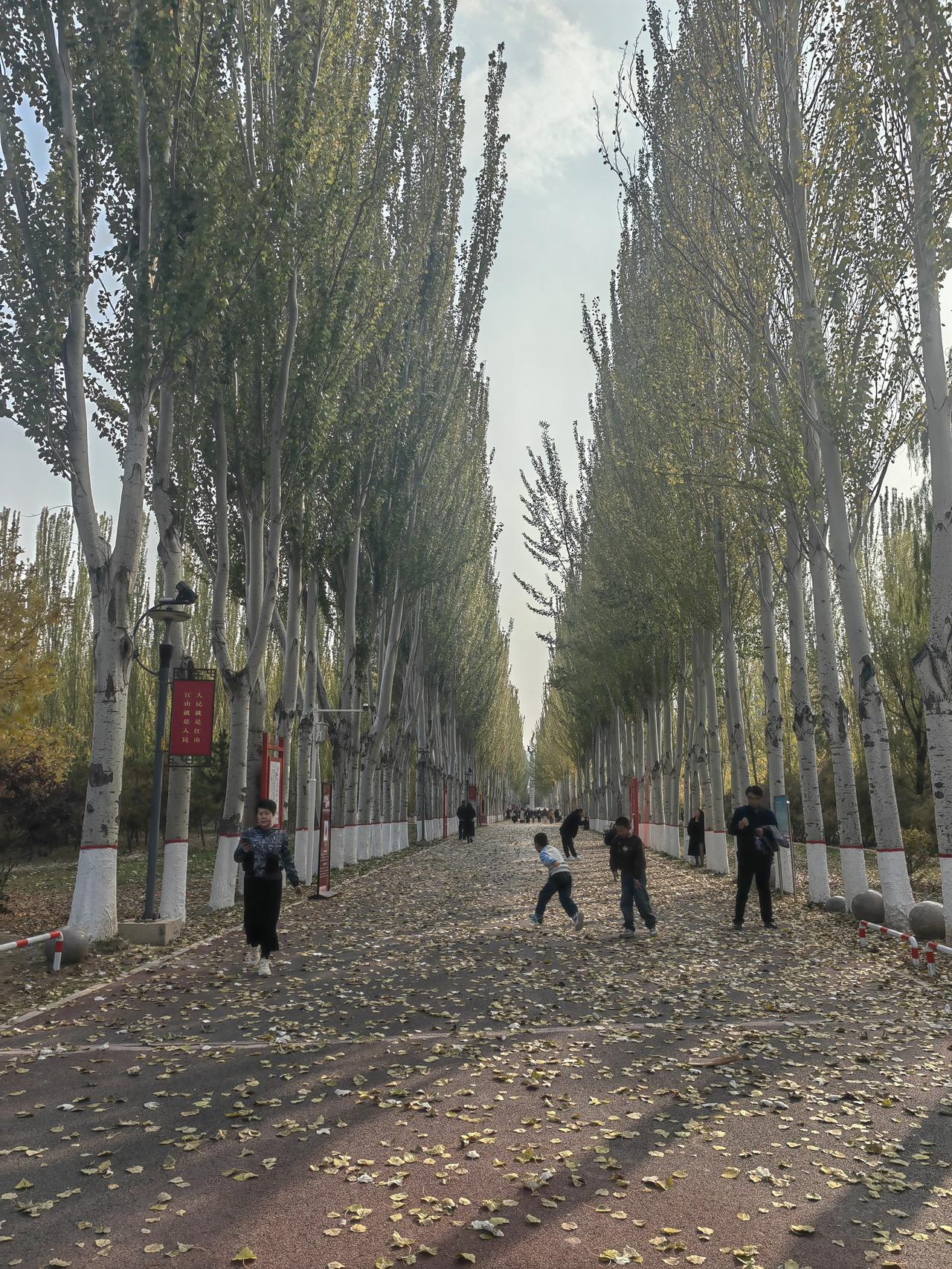 秋日周末,去凤凰公园打卡,真的太值了!走进古色古香的公园大门,迎面两排钻天杨树,看到一只彩色凤凰在飞舞。 一阵阵秋风拂过,公园里的杨树落叶纷纷,像给地面铺上了一层金黄的毯子,美如画卷。文旅部门组织了花卉展览和特色食品品尝、销售,还有一些游乐设施,让小朋友们不亦乐乎。不少游客都来这儿拍照,许多银川市民每年秋天都和家人来赏景。工作人员给树木涂白,为过冬做准备。红色游路被清洗干净,从落叶中露出“真容”。公园实行“落叶缓扫”,有选择性、周期性清扫,新落叶不立马清理,等干枯变色就扫到林带集中处理。要是遇到大风、降雨,就恢复“随落随扫”。秋日的凤凰公园,值得一去! 凤凰花旅游 凤凰公园网红树