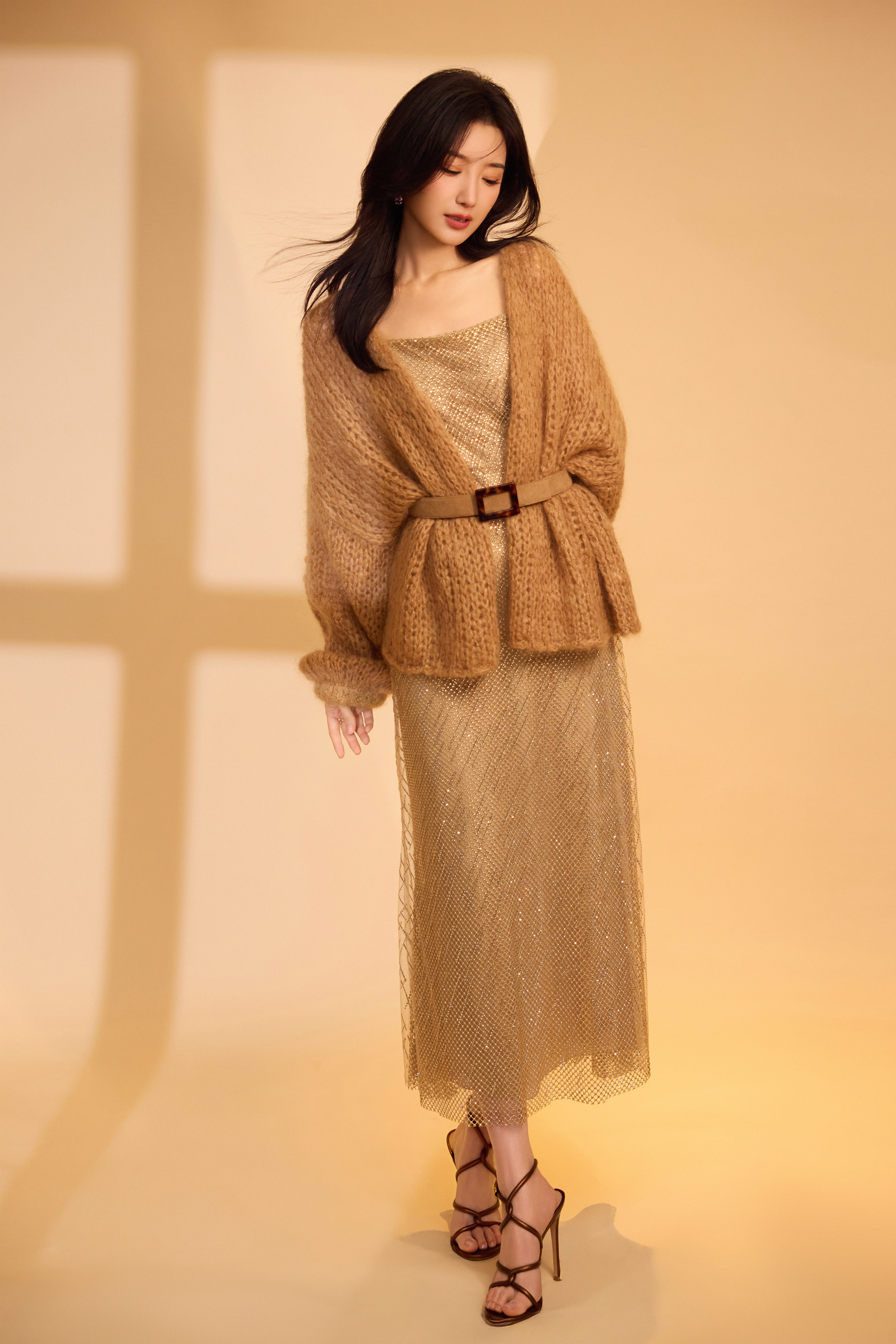 毛晓彤 暖棕针织裹住鎏金星光,在柔光里把温柔与璀璨,织成一帧帧心动模样。