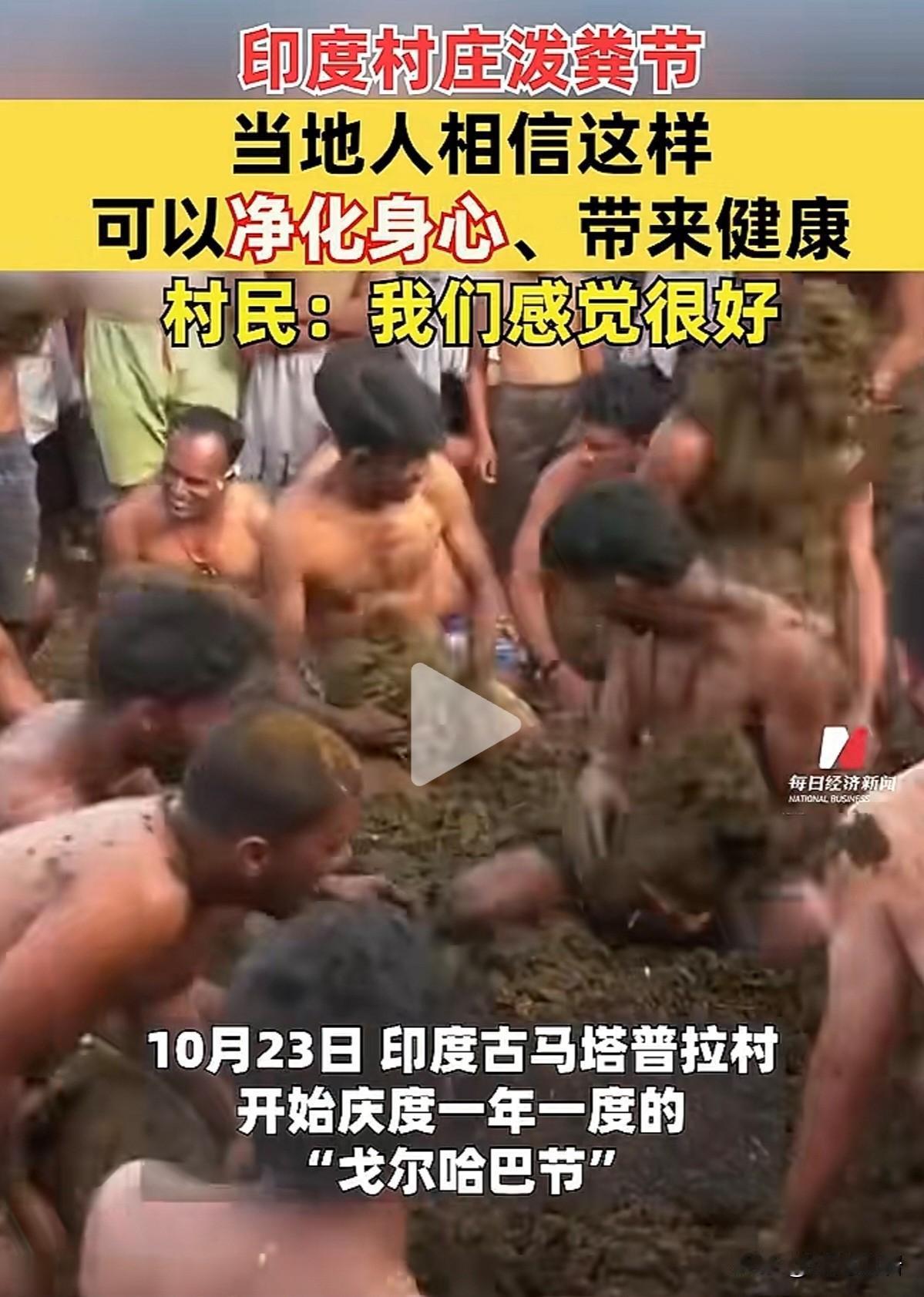 据报道,近日印度当地的一个村庄,举办了一年一度的泼粪节。当地的村民们相信,举办这个活动,可以净化身心,带来健康。这个节日,也叫“戈尔哈巴节”,在这期间,村民们会提前收集牛粪。等到节日来临,彼此之间会相互涂抹,相互投掷,以此来庆祝该节日。