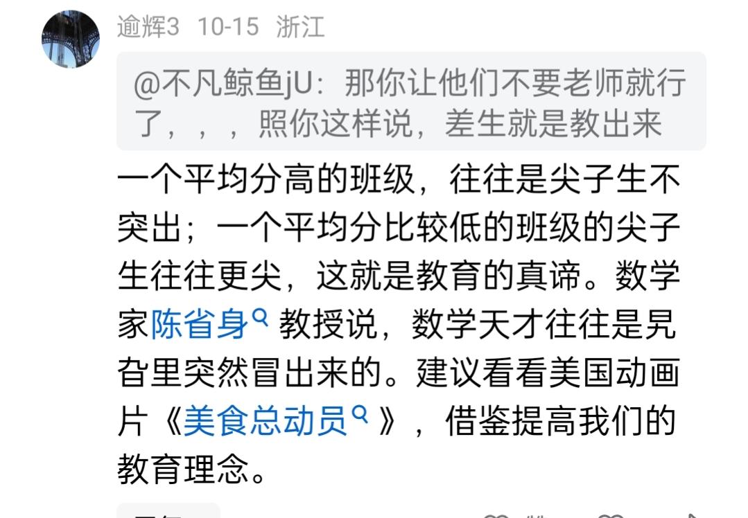 讲得详细一定好? 管理严格一定好? 手把手教学 把知识掰开来揉碎了喂学生? 这就是优秀的老师? 这样的教学…… 若一直如此,学生还会独立思考么? —————————— 女老师严格管理班级,整体成绩通常更高。 但管理太严苛,学生一直被压制,自我太弱,自主性被剥夺太多。 同类班级中,平均分最高的班级,往往尖子生不突出,就是这原因。 教学上没把握好分寸,管理上过分严格,带出来的学生即便一时取得较高分数,往往没后劲。