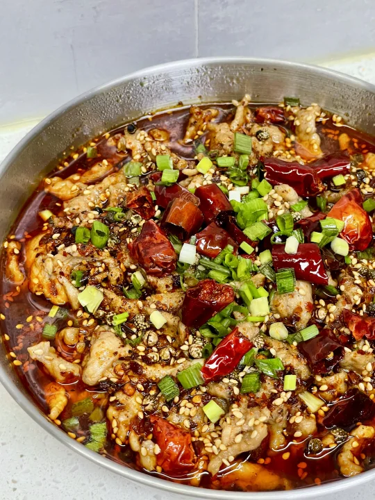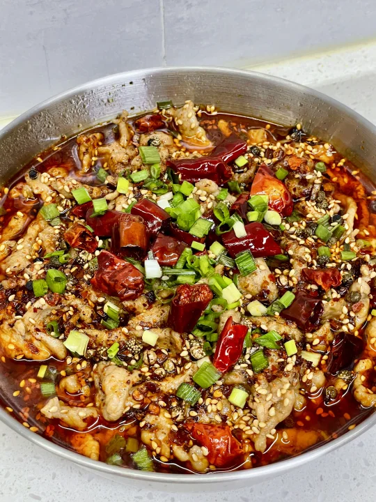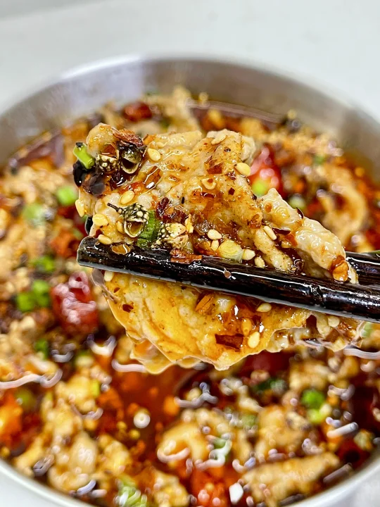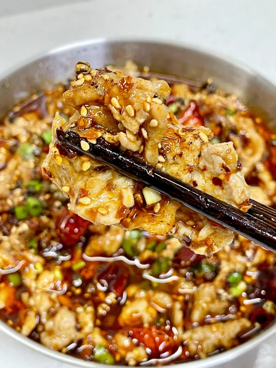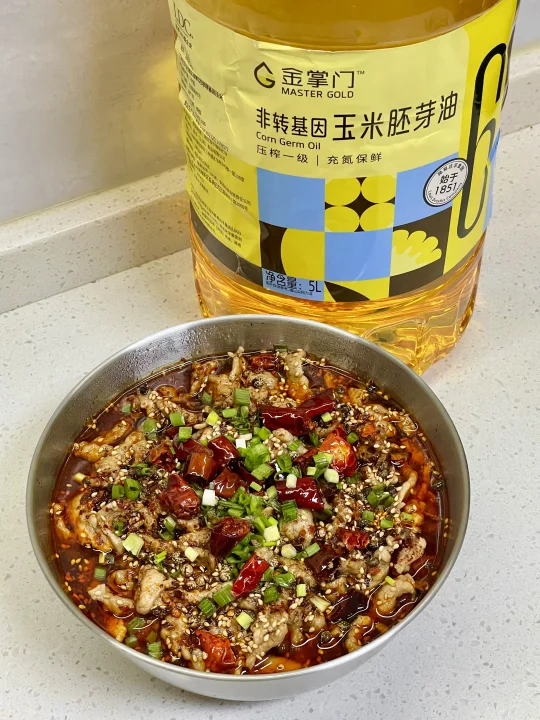 水煮肉片这样做巨下饭,我家最爱吃的家常菜,肉片嫩滑入味,配菜搭配什么都好吃😋 1⃣️:瘦肉切薄片,加盐 生抽 胡椒粉,水淀粉(多一点更嫩滑)抓匀备用 2⃣️:锅中油热倒入葱段 大蒜 干花椒 干辣椒炒香,放入一块火锅底料炒化,加一勺豆瓣酱炒出红油,加入适量清水,放入盐 胡椒粉 鸡精 几颗冰糖调味 3⃣️:水开继续熬煮一会儿,放入配菜煮熟捞出,转小火一片片放入肉片,煮定型后转中火大约煮一分钟,煮熟捞出放入碗中,再加入原汤,放入葱花 白芝麻 干花椒 辣椒面 少许辣椒段,泼热油即可 今天又做了最爱吃的水煮肉片,真的太下饭了,我家做菜喜欢用不抢味的油,所以又回购了金掌门的玉米胚芽油,淡淡的玉米香,清香不油腻,6重分离工艺让油质更健康纯粹,无论是炒菜还是凉拌菜,煎炸都很适合,家里有老人小孩的吃着更加放心!