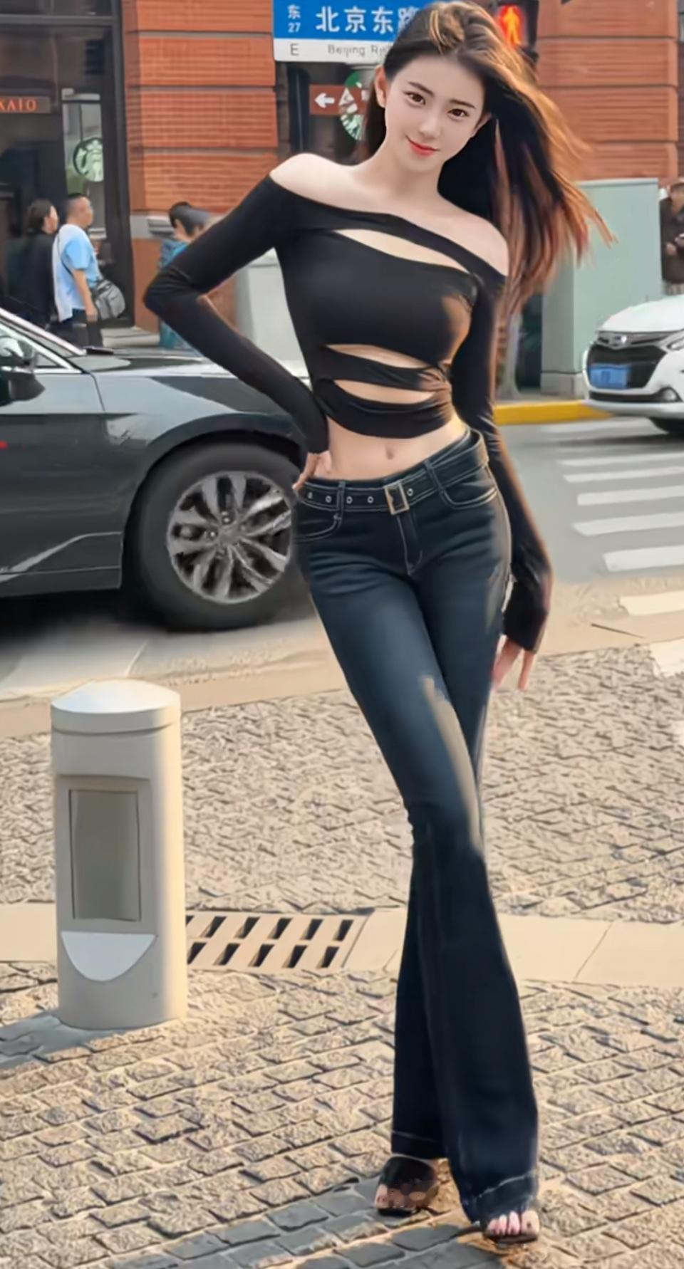 在上海北京东路的街头,她以独特的穿搭诠释时尚态度。黑色镂空露肩上衣大胆吸睛,喇叭牛仔裤勾勒出曼妙曲线,每一处设计都彰显着个性与魅力,在都市街角成为一道亮眼的风景,将潮流与自信肆意挥洒。