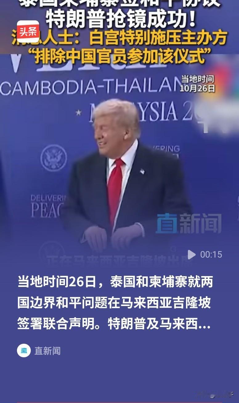 特朗普扮演小丑,抢镜泰柬和平协议签署,暗中驱赶中方官员参加。在亚洲,美国佬影响力真如此大吗? 非也。 东大务实不务虚,故意把这和平使者的虚名让给特朗普。毕竟稀土战略把美国人打疼了嘛,给他个面子,挣实实在在的好处。 最新的中美谈判简报来了。初步达成共识。这就印证了这一点,特朗普的关税加不起来了,此轮较量他输了。 美国人这是为了顾全脸面,才让主办方赶走中方官员,独揽大功。以对冲贸易谈判做出重大让步带来的耻辱。 实际上,作为世界第二大经济体,家门口的事,还是说了算的。 相信全世界都看得很清楚。是中方的调停,起到了决定性作用。美国只不过是顺手牵羊而已。 实力决定一切,美国是世界老大,我们承认。可这老大在亚洲。 吃过多少败仗?美国人自己更清楚吧?他怎么好意思说,亚洲他说了算? 人常说,缺什么就想得到什么。 美国缺的就是亚洲影响力。所以才这么想要得到外界的认可。 随他去。 泰柬签和平协议 特朗普抢镜成功