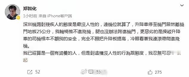 郑智化吐槽深圳机场服务差时,估计没料到大陆的“监控”能直接戳破那点小心思吧? 咱当初听《水手》《星星点灯》时多上头,连《大国民》里的敢说劲儿都让人觉得他够真实,可转头才看清——有些湾湾艺人的“不满”特双标:对台湾当局吐槽是博好感,对大陆服务挑刺儿,大概率是觉得“人傻钱多,好拿捏”。 深圳航空没废话,道歉的同时甩全程监控,等于明明白白说“没瞎编”。真想问问他,回台北桃园机场时,要是遇着同款服务,还会这么理直气壮吐槽吗? 说到底,尊重是相互的,别拿着大陆的包容当底气耍套路,你觉得这种“一边赚好感一边挑刺”的操作,配得上当年那首《水手》的情怀不?