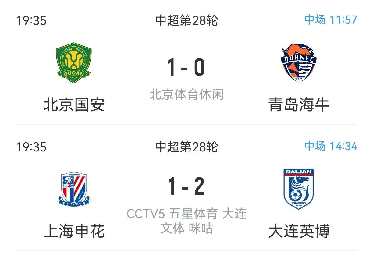泰山是阻击了,成都、申花在干嘛? 出去吃饭刚回家看了一眼比分,真行,这是冠军烫手啊,成都补时落后西海岸,申花半场落后大连英博。 这个时候就感觉北京国安可惜了,自从输了0比6就没精气神了,不然国安争冠机会真是挺大,感觉前面这几个队踢的都够菜的。 其实比较看好成都也希望成都拿一个,但是这场输了估计没戏。申花下半场能不能打回来也没准。 上港球员伤病比较严重,本来输这场是不看好他了,但这么一比较,还是上港冠军可能的大呀。