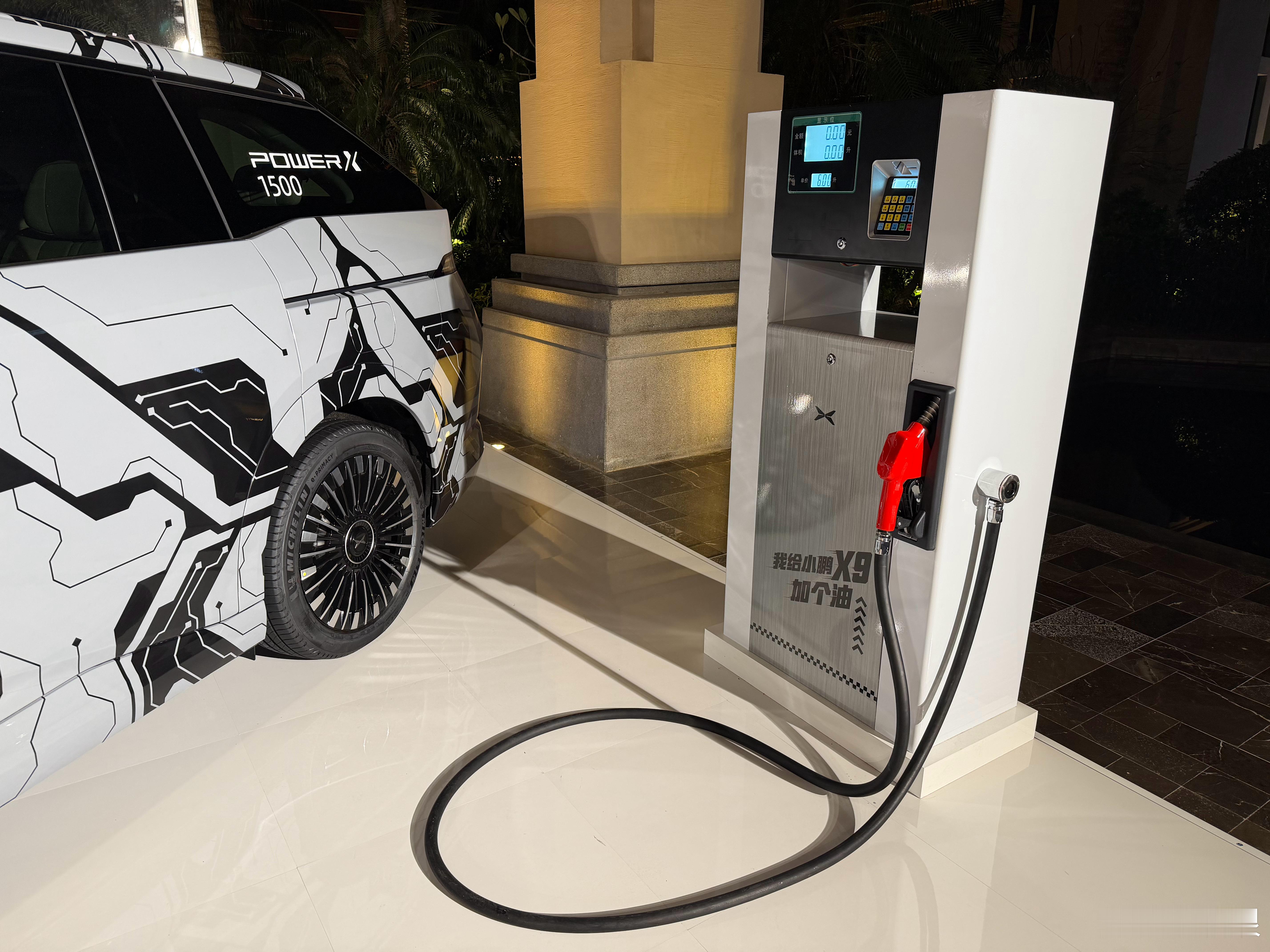 但是突然有一天,电动车宣传的时候在旁边摆了个加油机。