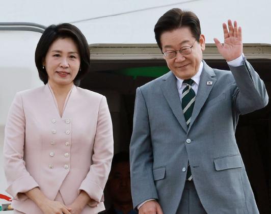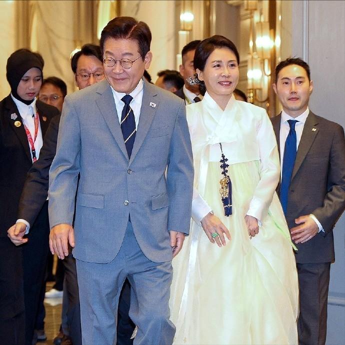10月26日,韩国第一夫人和老公李在明抵达马来西亚吉隆坡。 值得一提的是,韩国夫