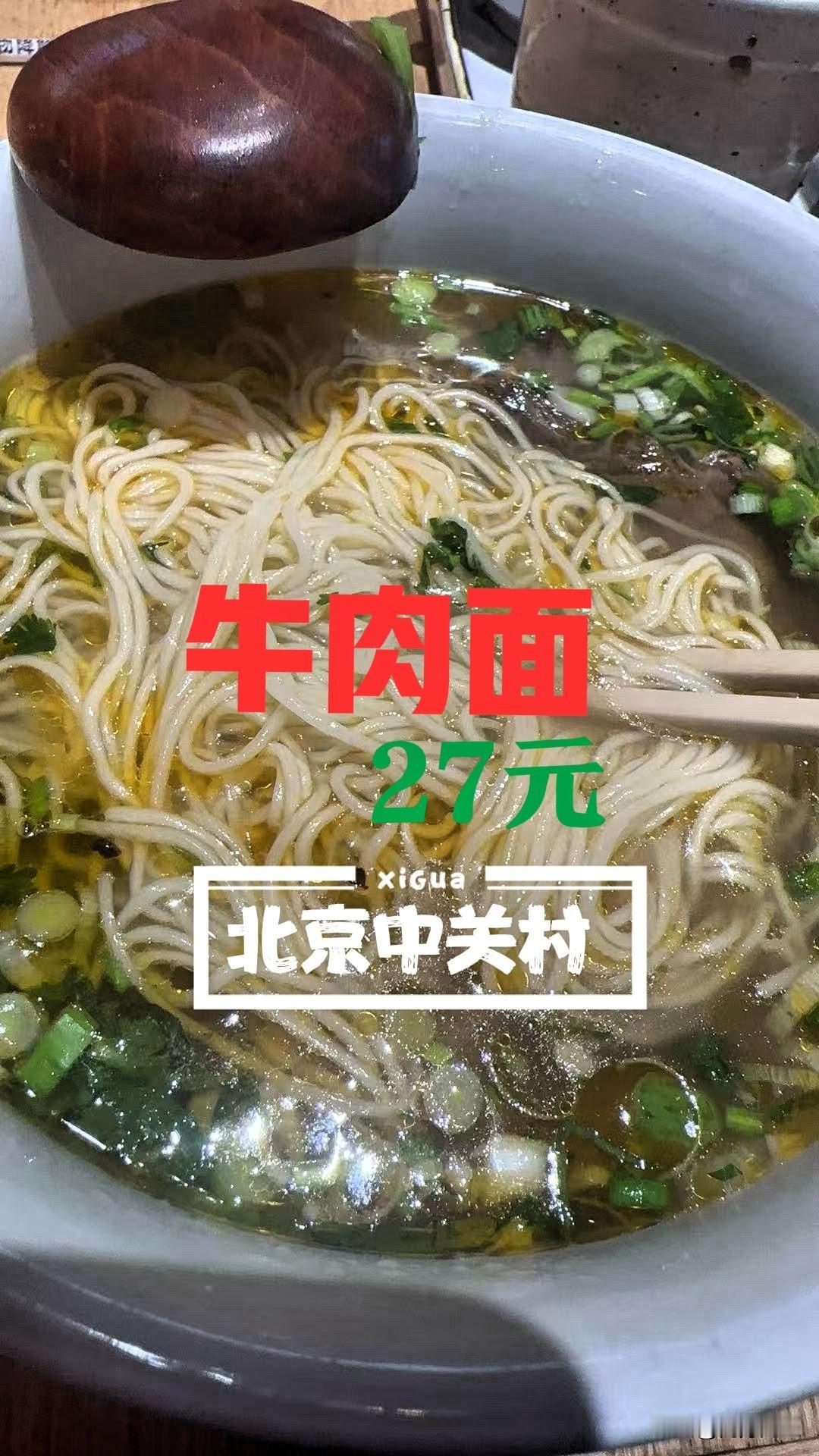 猜猜北京中关村一碗牛肉面多少钱?北京中关村牛肉面27元,你觉得贵不贵? 今天是周末, 孩子连续几天都在公司里加班, 工作到凌晨一点多才回来。 今天公司通知又要继续加班 。 昨天他不能回来吃晚饭, 为了赶时间, 只有去公司楼下找最近的饭馆 他选择吃碗牛肉面 结账时直呼太贵吃不起 你猜猜 他吃的这碗牛肉面多少钱?