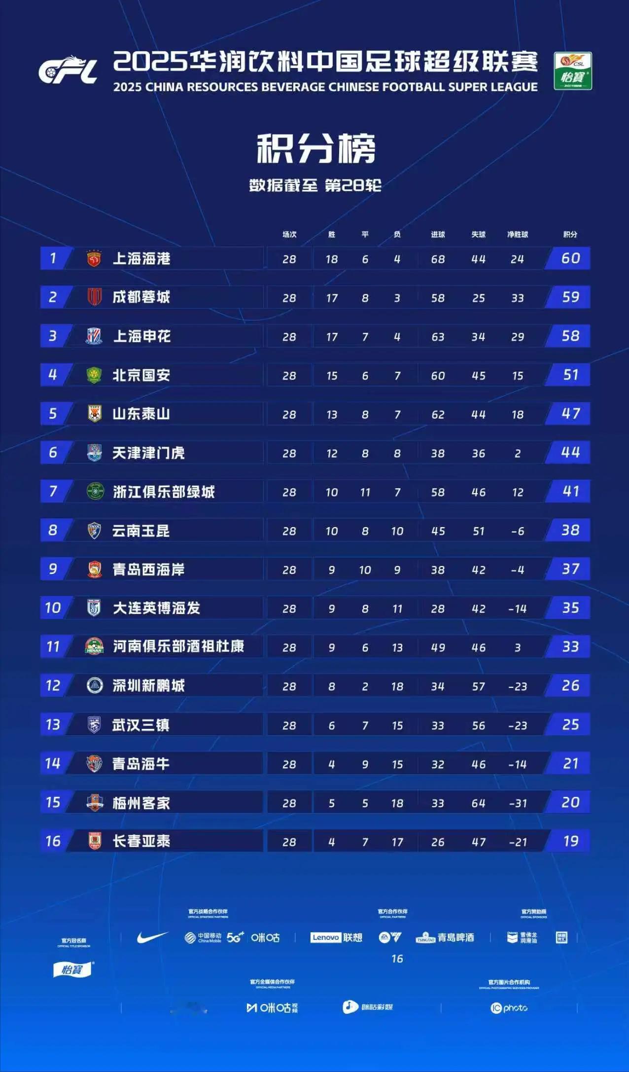 看中超第28轮,意外多多: 一是各队均有进球,8场合力打入34球,场均进球逾4个; 二是除泰山队主场取胜外,另7个主场4平3负; 三是BIG4全都集体刹车,犹如强弩之末; 四是并未如多数预言,本轮让争冠和保级水落石出,中超悬念可望延续到最后。