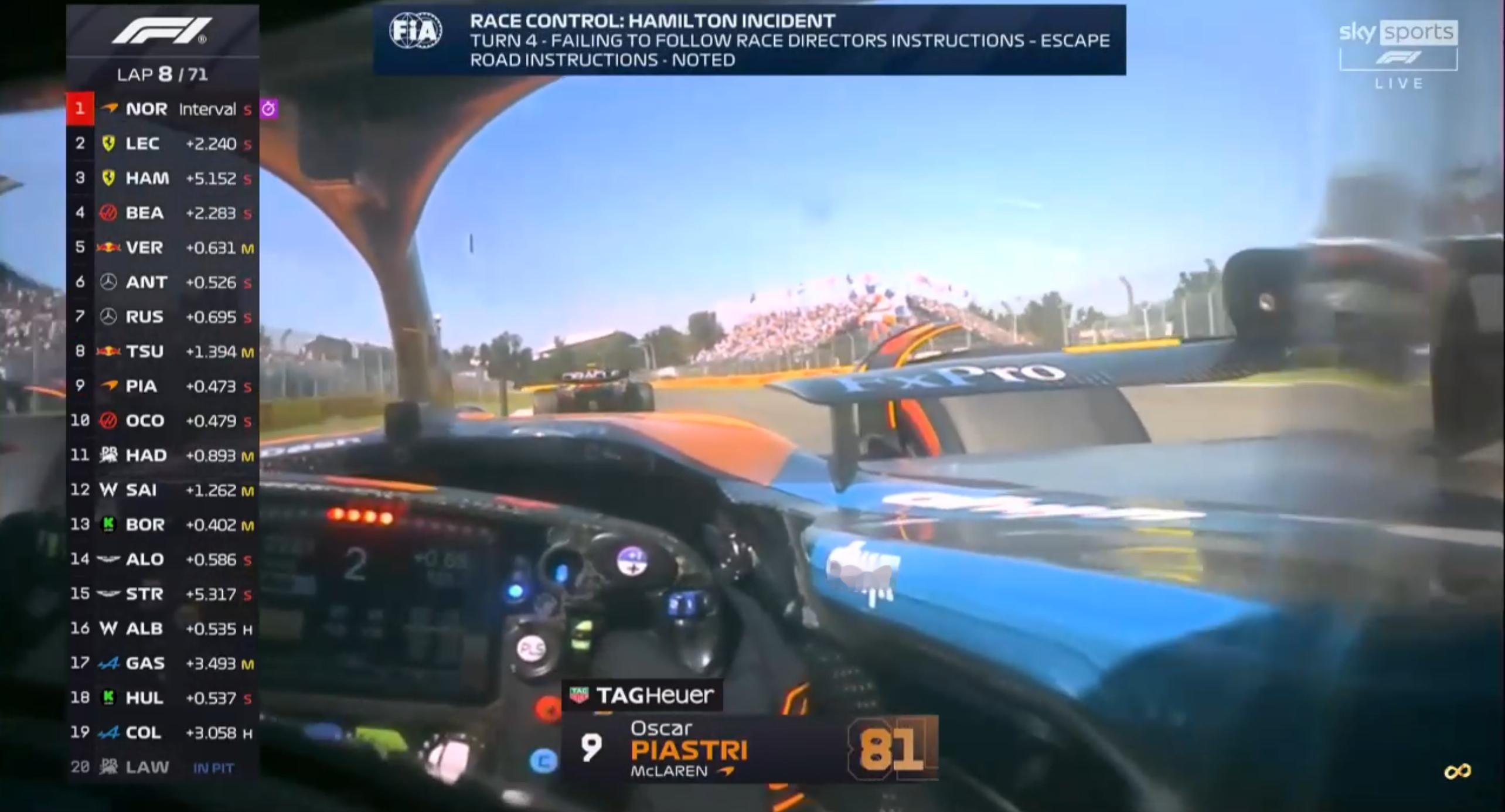 汉密尔顿因为没有按照赛会指示的逃生通道行走,被赛会记录